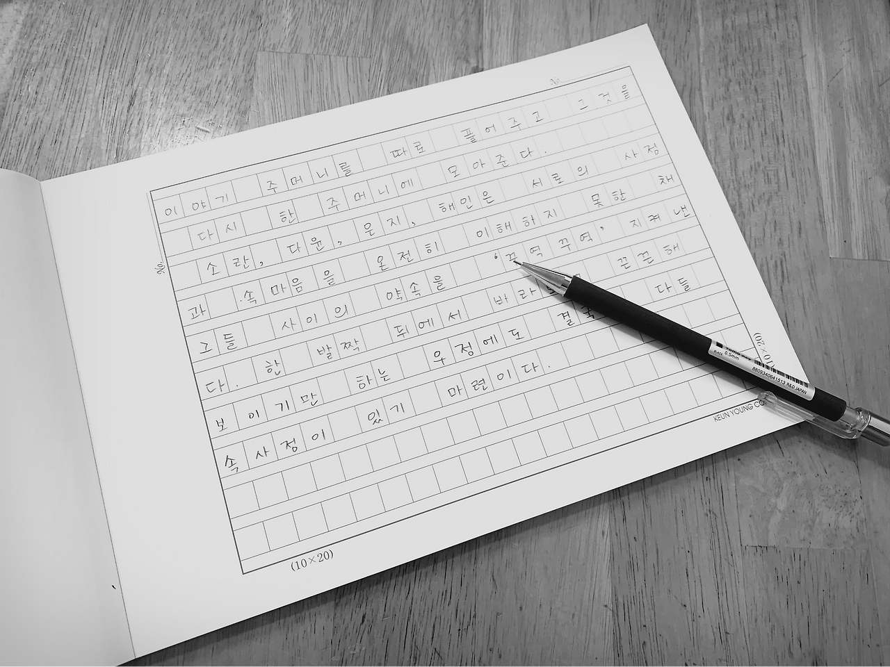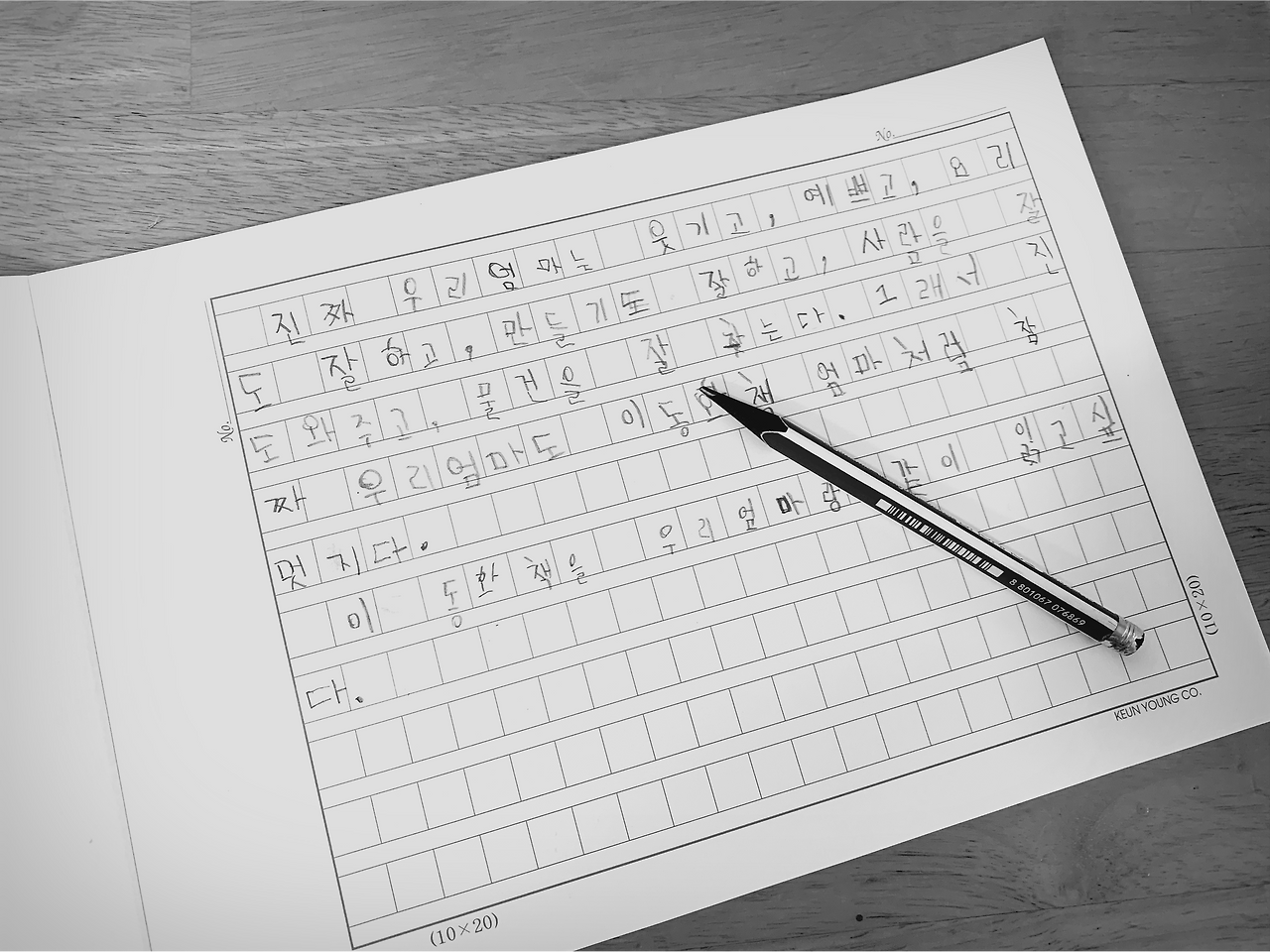 아이는 삐뚤빼뚤한 글씨로 원고지를 채워 나갔다.