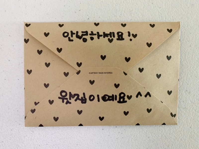 쿠키와 손편지, 그리고 그림과 종이 접기까지 봉투에 잘 담아 아랫집 현관에 걸어두고 왔다.