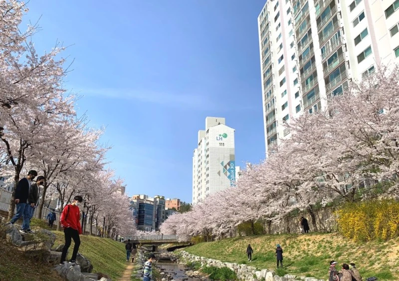 집 앞의 무거천을 쭈욱 따라서 긴 벚꽃길이 이어진다.