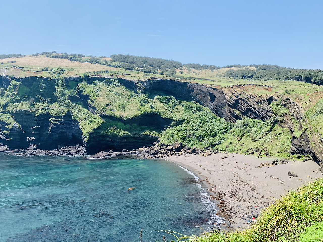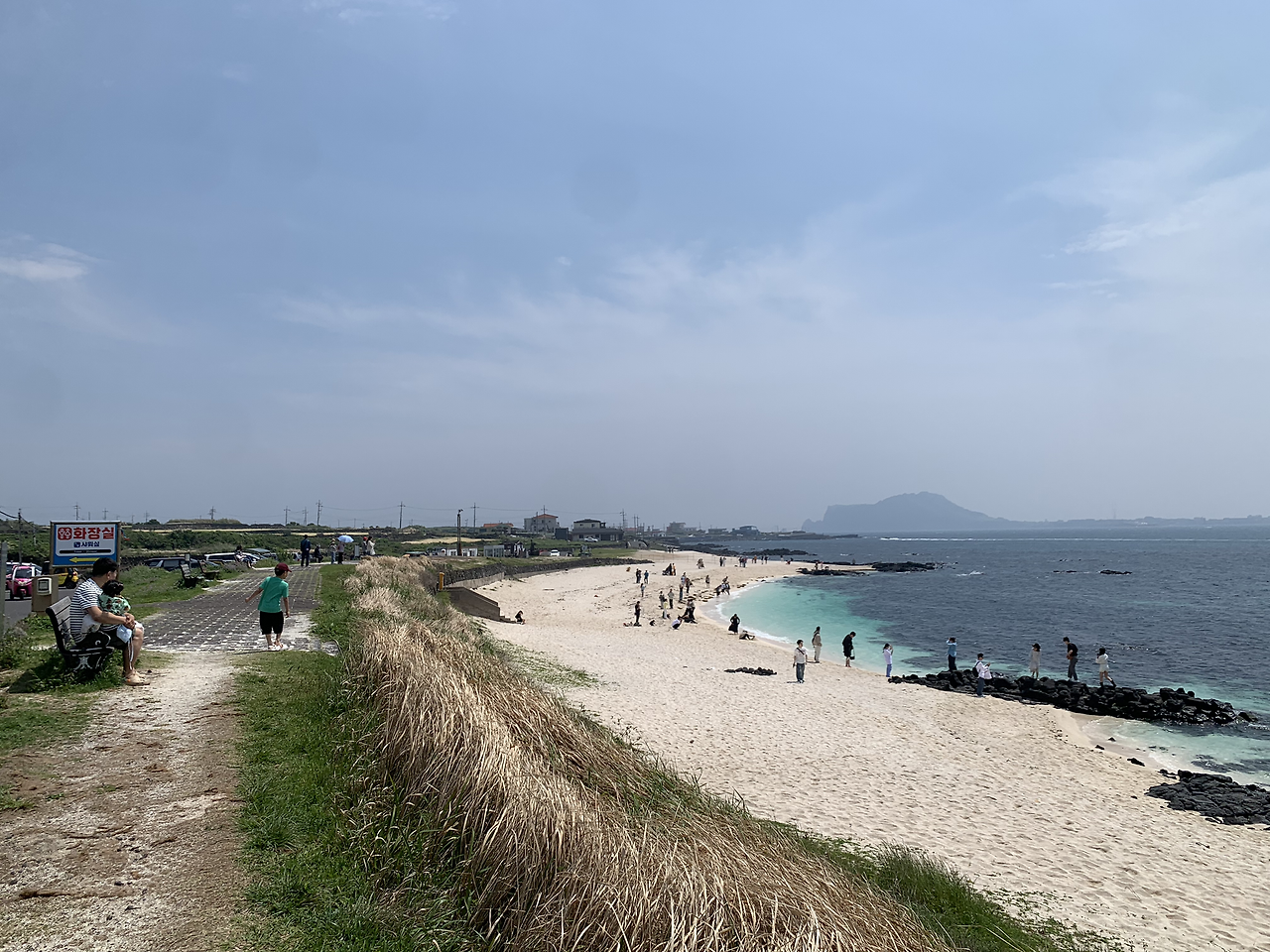대한민국에 이런 해수욕장이 있을 수 있다고? 하는 말이 절로 나오는 이국적인 풍경의 하얀 모래사장을 기반으로 한 해수욕장이었다. 첫날, 첫 여행지가 함덕 해수욕장이었던 건 큰 행운이었다. 수목원길 야시장을 포기하고도 전혀 아깝지 않을 을정도로 아름다운 바다였고, 아이들이 옷을 적시며 한참을 뛰어놀 수 있었던 이번 여행 중 최고의 자연 놀이터였다. 또다시 제주에 가더라도 찾고 싶은 아름다운 해변이었다.