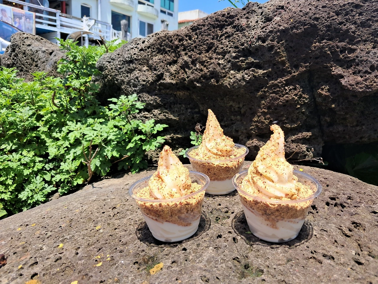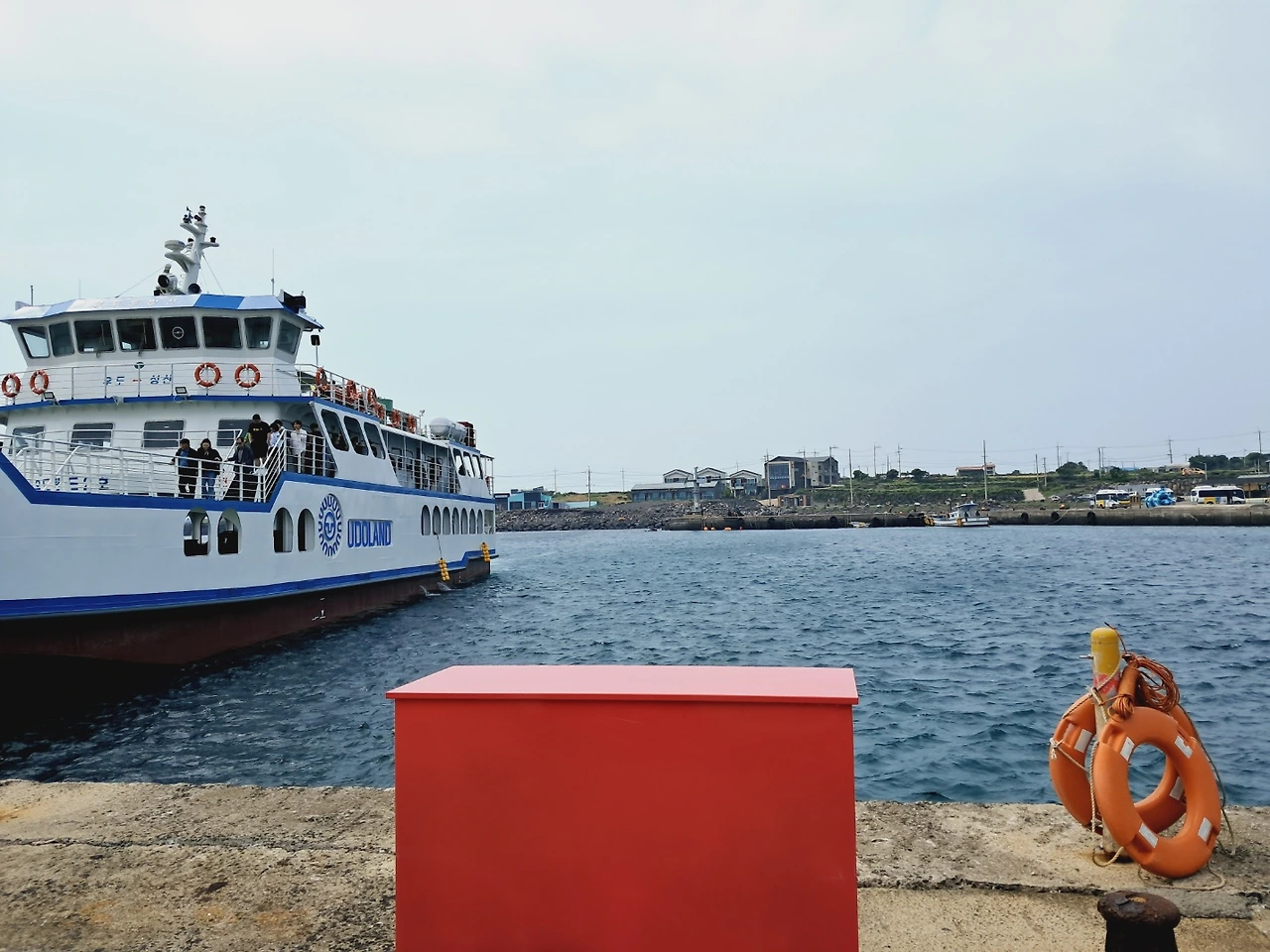흐린 아침이었다. 우도에 가기로 했는데, 바람도 불고 쨍하지 않은 날이라 고생스럽게 배를 타는 일이 과연 가능할까 싶어 우도 입도가 망설여졌다. 하지만 이번 여행도 '도전'을 모토로 이루어지고 있었으니, 날씨와 시간을 재지 말고 그냥 경험해 보기로 했다. 우도 땅콩 아이스크림을 이번에도 놓치고 싶지 않은 마음도 있었기에 우도 입도를 확정 지었다. 우도로 향하는 배에 오르기 위해 성산포항에 도착하니 날씨가 점점 맑아지고 있었다. 바람은 여전했지만 햇살이 환하게 내리쬐는 날이 드디어 시작되었다. 차를 탄 채로(만6세 미만 아이와 동반 여행할 경우 우도에 차량을 가지고 들어갈 수 있다.) 배에 올라타고, 배에서 바다를 느끼며 우도에 도착했다. 우도에서는 딱 두 군데의 포인트만 가보기로 했다. 검멀레해변, 산호해변(사빈백사) 두 곳 모두 매력적인 해변이었다. 특별히 어떠한 포인트가 기억에 남을만한 곳은 아니었지만, 분명 우도는 한 번쯤 다녀와야 하는 아름다운 섬이 틀림없었다. 우도 땅콩도 놓치기엔 섭섭해서 하나씩 맛보았고, 아이스크림 앞에서 아이들은 그저 싱글벙글했다.
