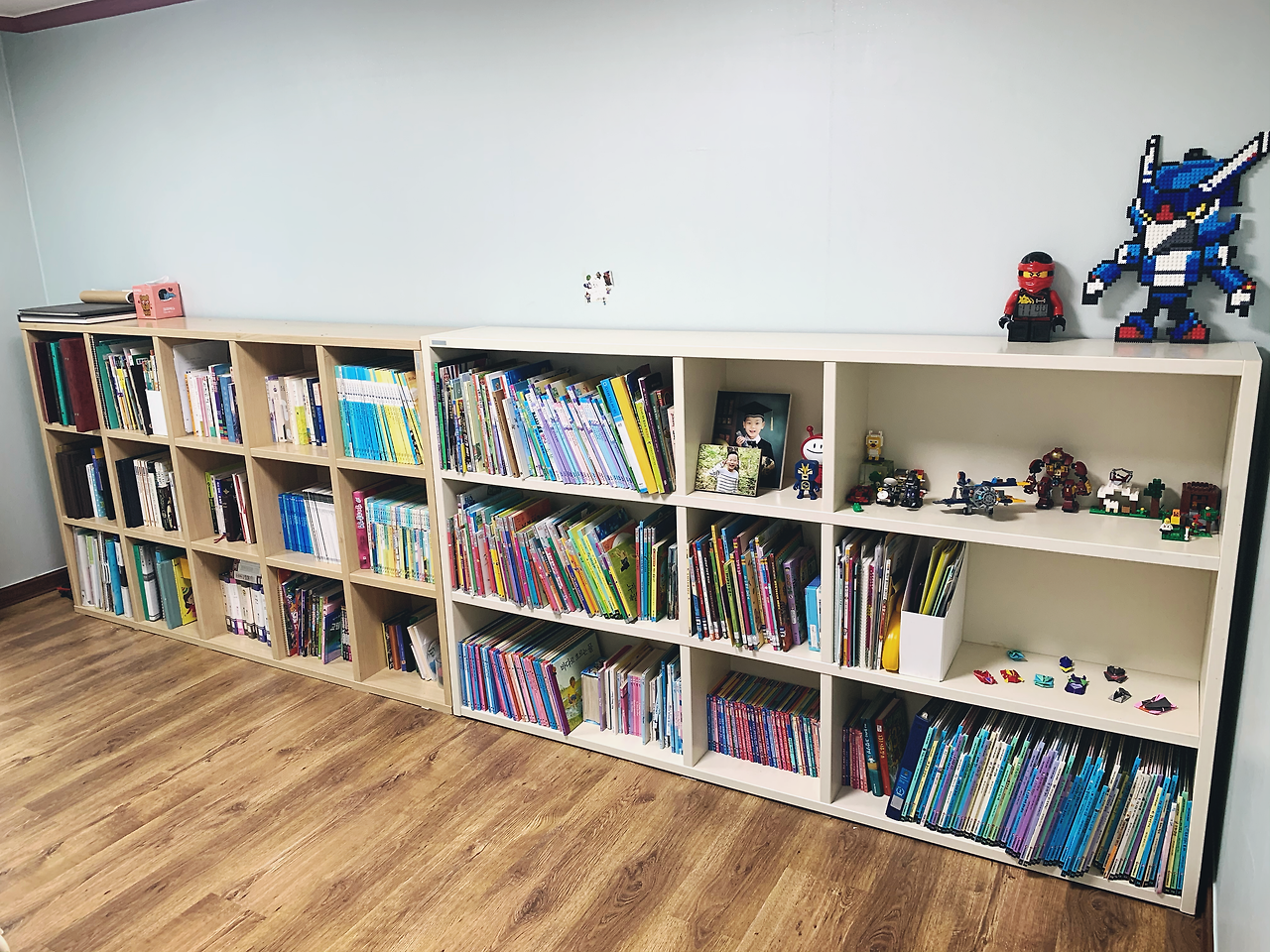 서재에 있던(지금은 침실이 된) 키가 큰 책장을 눕혀서 아이들 활동방으로 넣어 주었다.