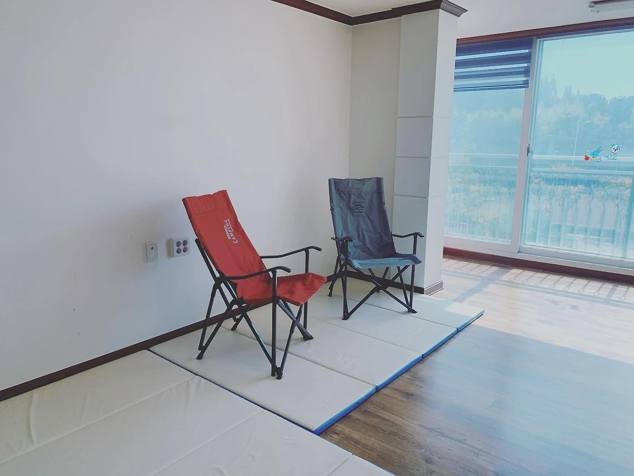 캠핑의자를 거실에 배치하고