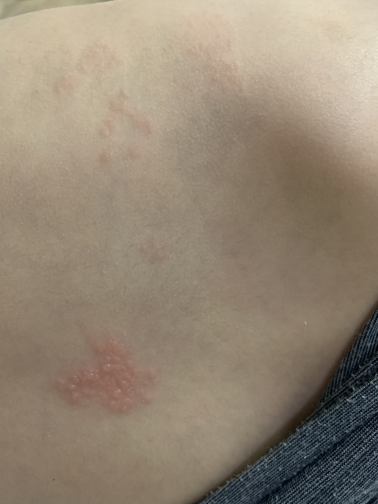 등 왼쪽으로 새로운 물집 군이 생겨났다.