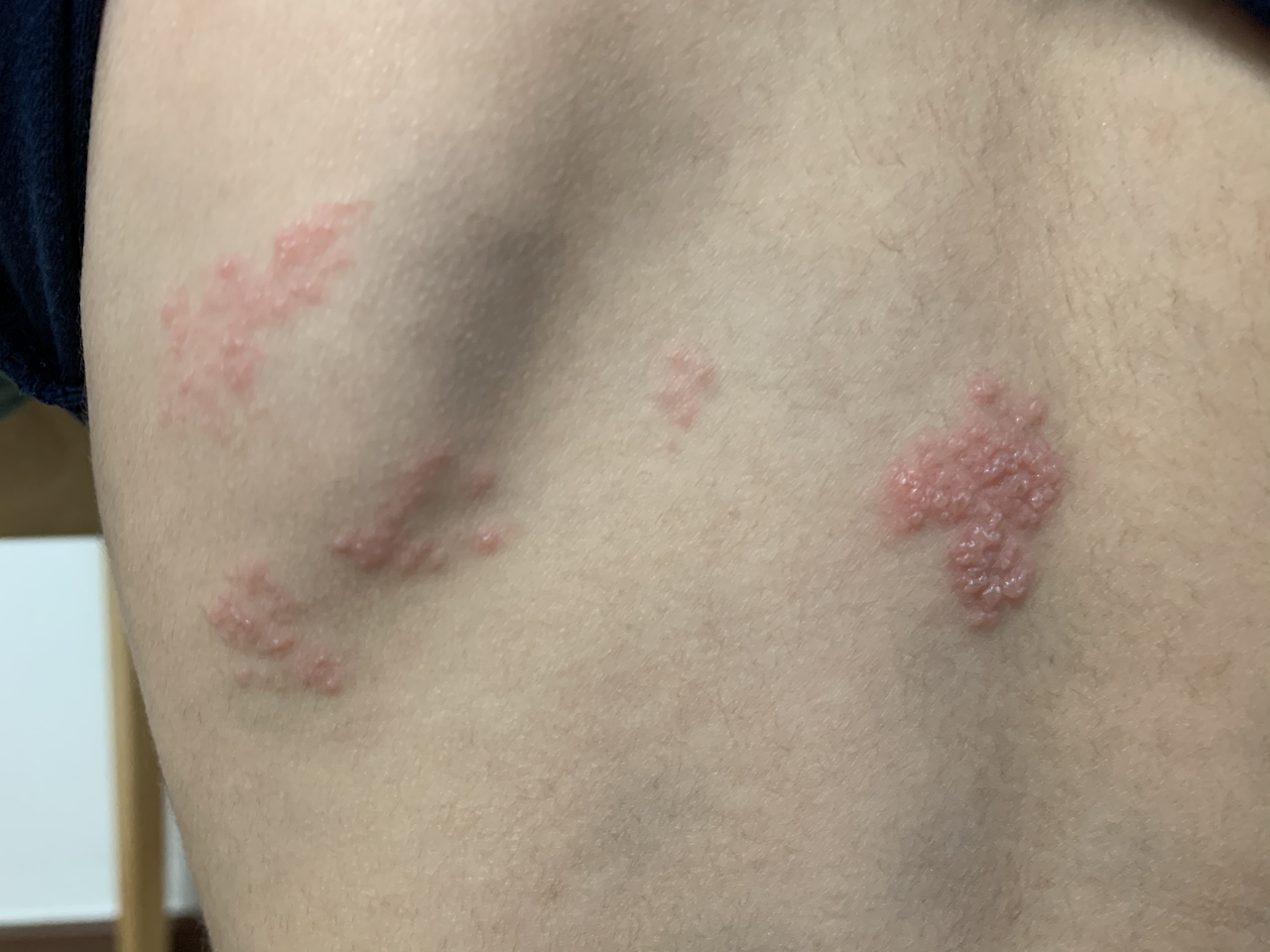 위의 사진과 같은 수포라면, 대상포진을 의심하고 진찰을 받는 것이 좋다.