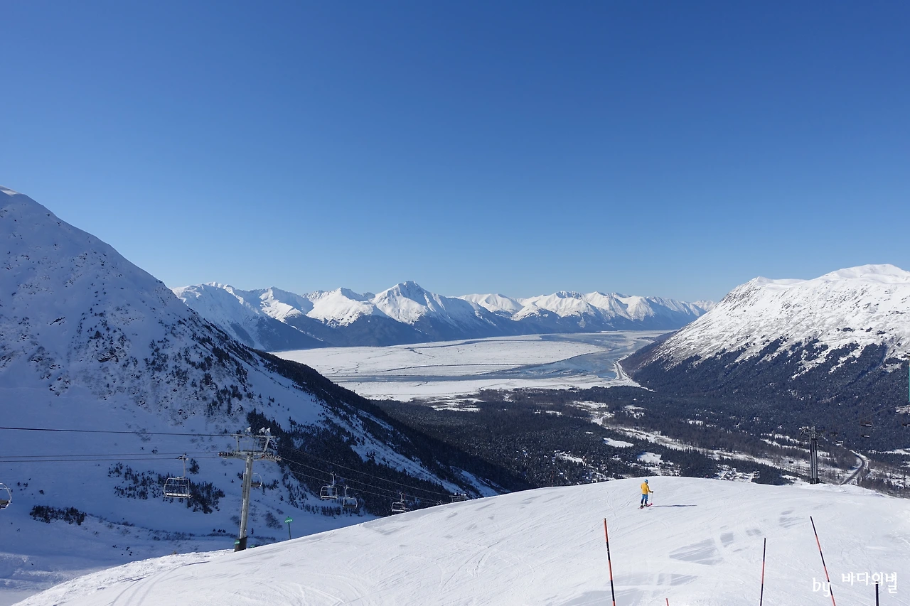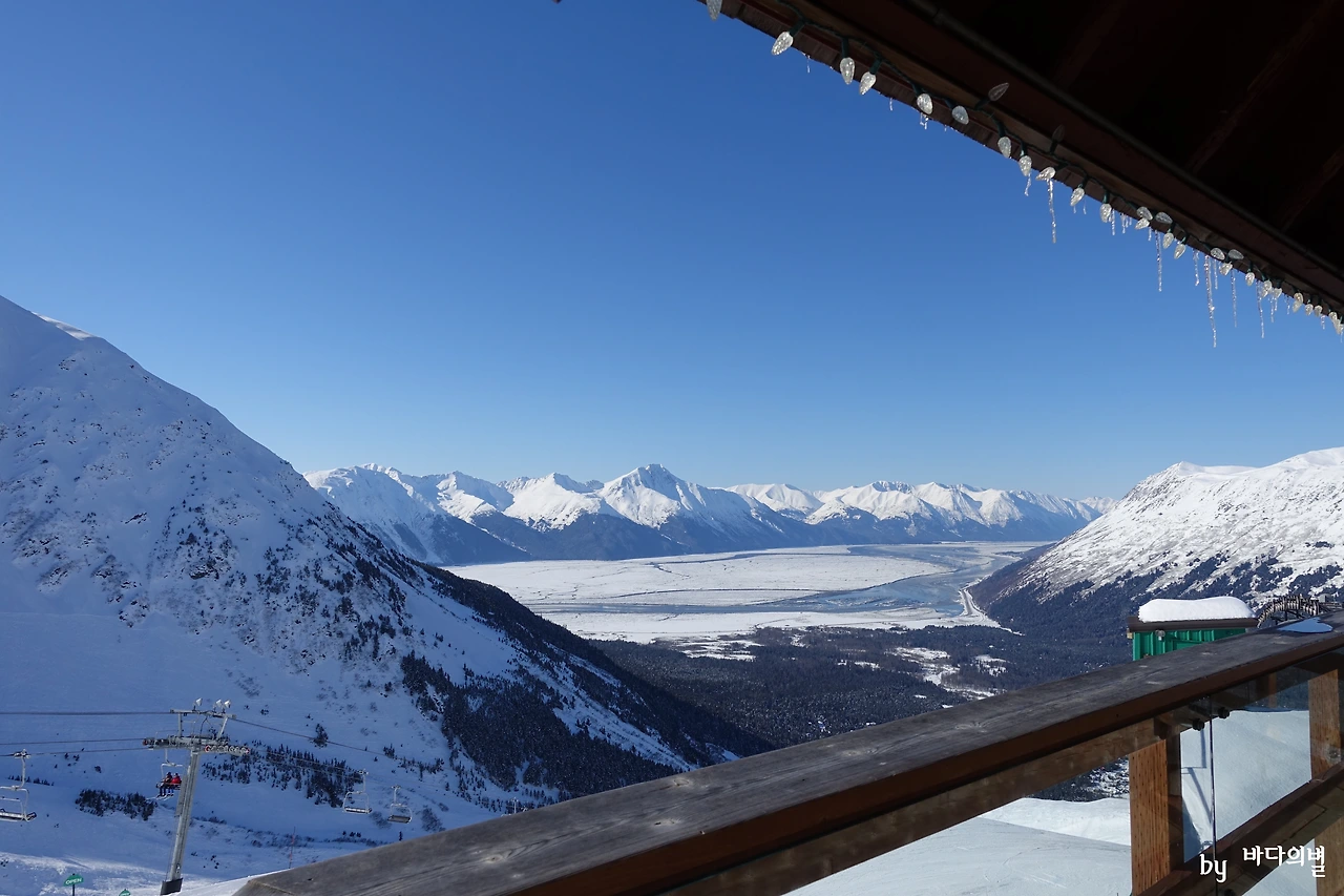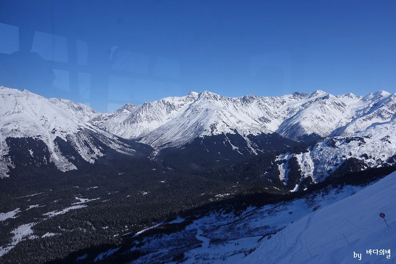 1시간 정도 달리니 알리에스카(Alyeska)에 도착했다. 이곳에서는 케이블카를 타고 맨 위 전망대로 향한다. 대부분 스키를 타러 오는지, 스키나 보드 장비를 들고 타는 사람들이 많았다.