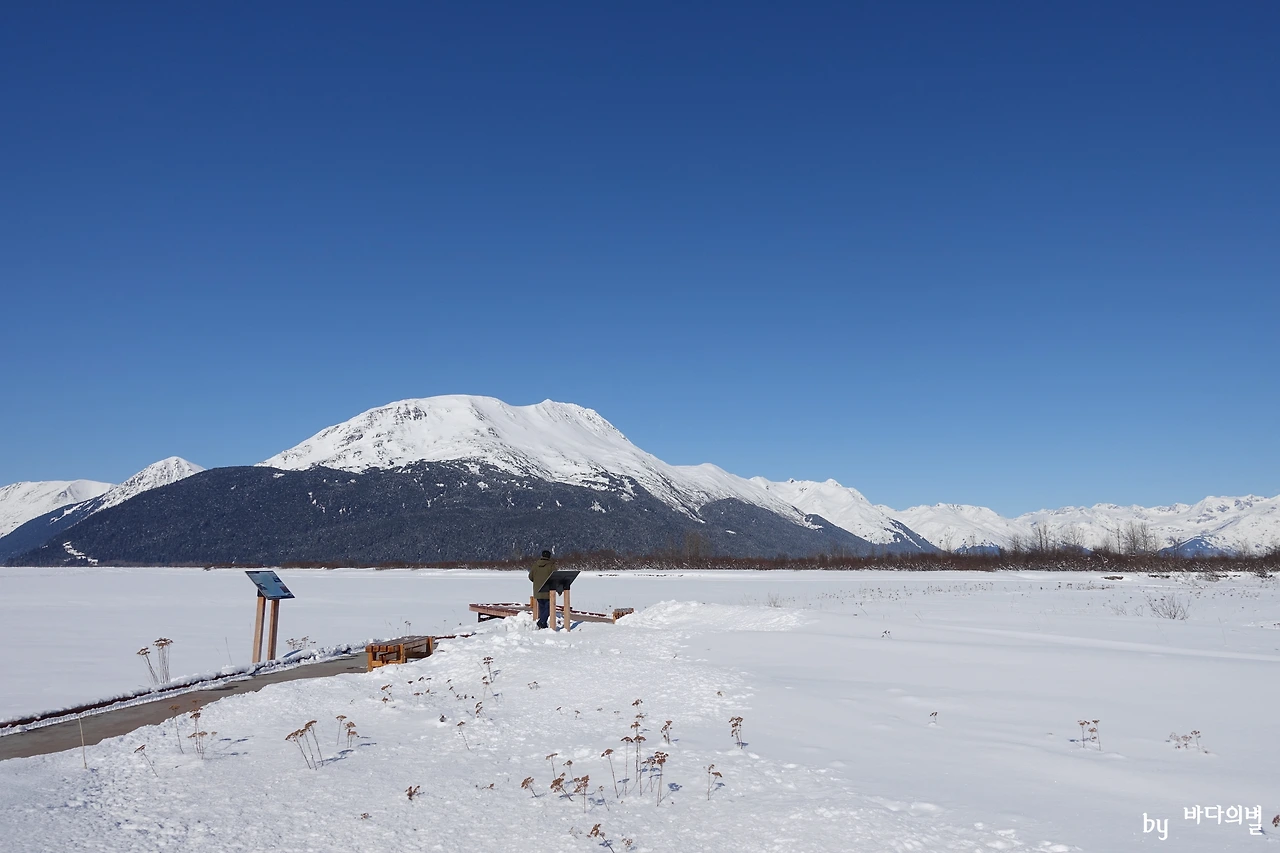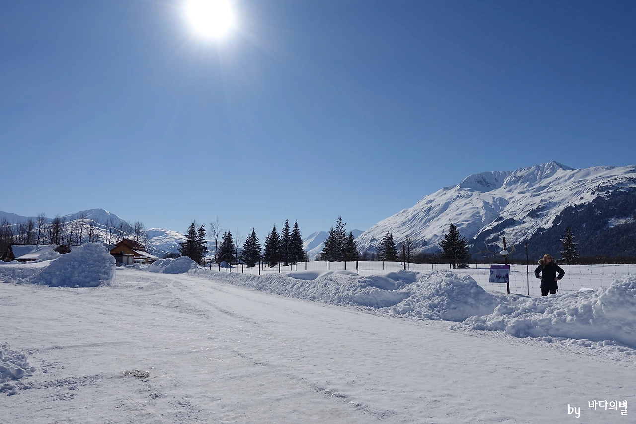 아침 식사 후, 바닷가를 조금 걷다 인포메이션 센터로 가보았다. 근교에 있는 알래스카 네이티브 헤리티지 센터(Alaska Native Heritage Center)가 현재 운영을 하고 있는지 확인하기 위해서였다. 우려했던 것처럼 겨울 시즌에는 한정된 일자에만 개방을 하고, 내가 있는 동안에는 열지 않았다. 직원은 나의 알래스카 일정에 대해 묻더니(나는 앵커리지에 며칠 있은 후 북쪽 페어뱅크스로 이동할 예정이었다), 남쪽으로 향하는 일일 투어를 해보는 것은 어떠냐고 권유했다. 좋은 생각 같아서 길 건너 여행사에 문의해보았다. 마침 30분 뒤에 출발하는 투어에 자리가 남아있다고 했다. 투어 인원은 나까지 5명, 가이드까지 6명이었다. 캐나다에서 온 부부와 호주에서 온 친구 둘이었는데 작은 동양인 여자애가 세계여행을 한다고 하니 신기한 듯 투어 내내 이것저것 물어보았다.