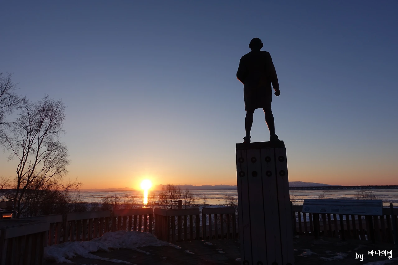 점심에 먹은 클램 차우더가 든든했는지 저녁에는 크게 배가 고프지 않았다. 간단한 간식을 사들고 숙소에 들어가 먹고, 일몰을 보기 위해 쿡 선장의 동상이 있는 레솔루션 파크(Resolution park)로 갔다. 곳도 인포메이션 센터에서 추천해준 곳이다. 멀리서 해가 하늘과 바다를 물들이는 모습은 언제 봐도 멋지다.