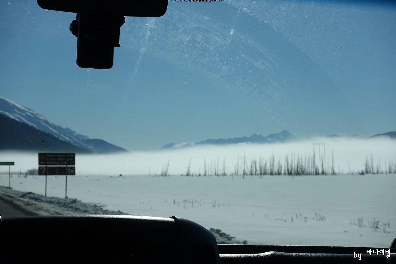 눈안개 같은 것인가, 차를 타고 가는데 음산하기도 하고 신비롭기도 하고. 처음 보는 풍경이었다.