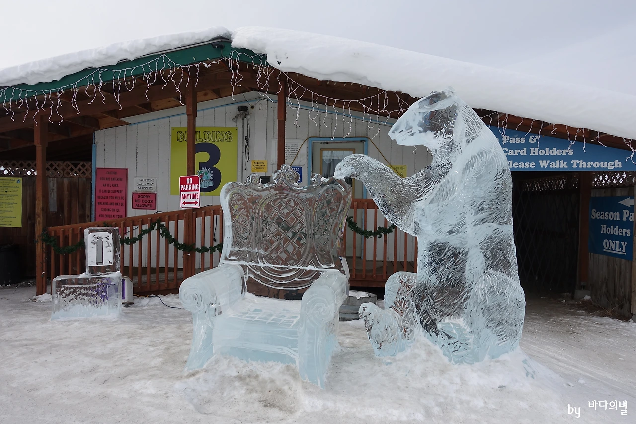 페어뱅크스에 돌아와서는 Ice Alaska 전시 공원에 갔다. 저녁에 가면 불빛이 켜져 더 예쁘다는데, 전날부터 편두통에 시달리고 있었기 때문에 일찍 쉬기로 했다. 행사는 이미 다 끝나고 추가 전시 중이라서 한산했다.