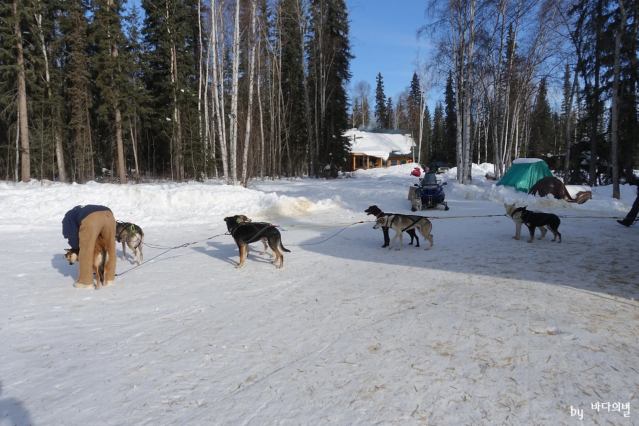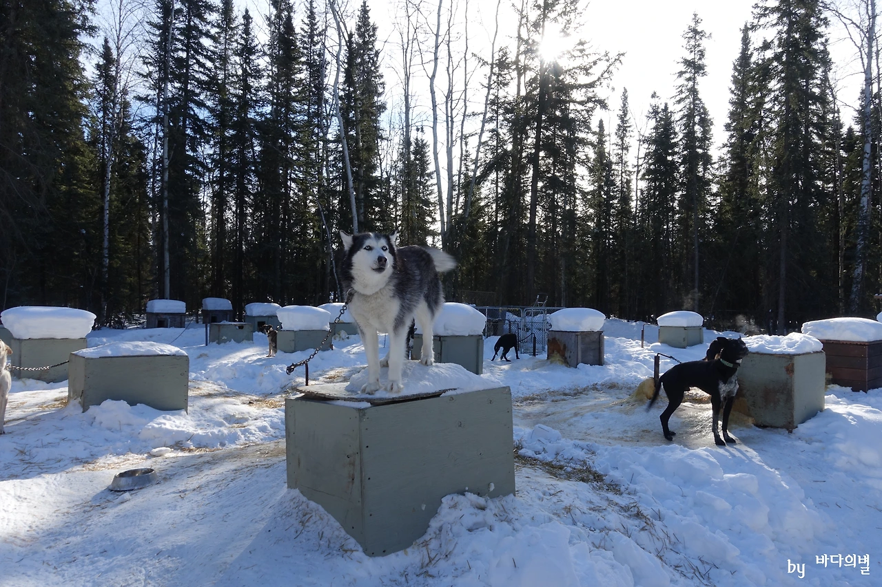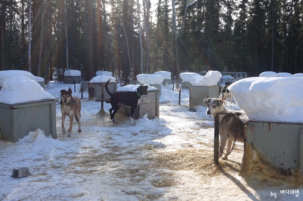 이곳은 알래스카 챔피언 경력도 있는 에이미라는 이름의 여자가 실제로 연습하고 훈련하는 곳인데, 우리처럼 관광객들이 오면 현역(?) 개들이 아닌 나이가 들어 경주에 나갈 수 없는 개들로 선정해서 달린다고 한다. 실제 경주를 하는 팔팔한 개들이 달리면 너무 빠르기 때문에 위험할 수도 있고, 또 나이가 든 개들에게도 신나게 달릴 수 있는 기회를 주기 위해서라고 했다.
