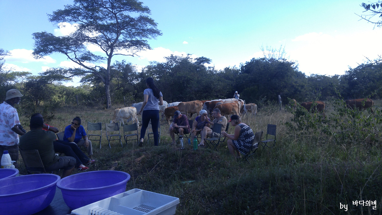 몇 번 이렇게 길가에 이것저것 세워놓고 점심을 먹었던 적도 있는데, 소를 몰고 지나가는 아이를 보기도 했다. 아이는 10대 초반 정도로 보였는데, 대여섯 살 정도 되어 보이는 동생을 함께 데리고 있었다. 나는 그때 요리 보조 담당이었고 다른 친구들은 의자에 앉아 식사 시간을 기다리고 있었는데, 평소 워낙 많은 동물들을 봐와서 그런가 소에 관심을 두는 사람은 거의 없어서 재미있었다.