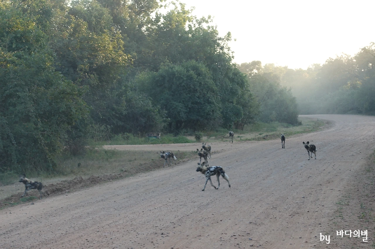 다리를 건나 우리는 또 와일드독 무리를 발견했다. 보기 어렵다는 와일드독을 우리는 참 여러 번, 여러 마리를 보았다.