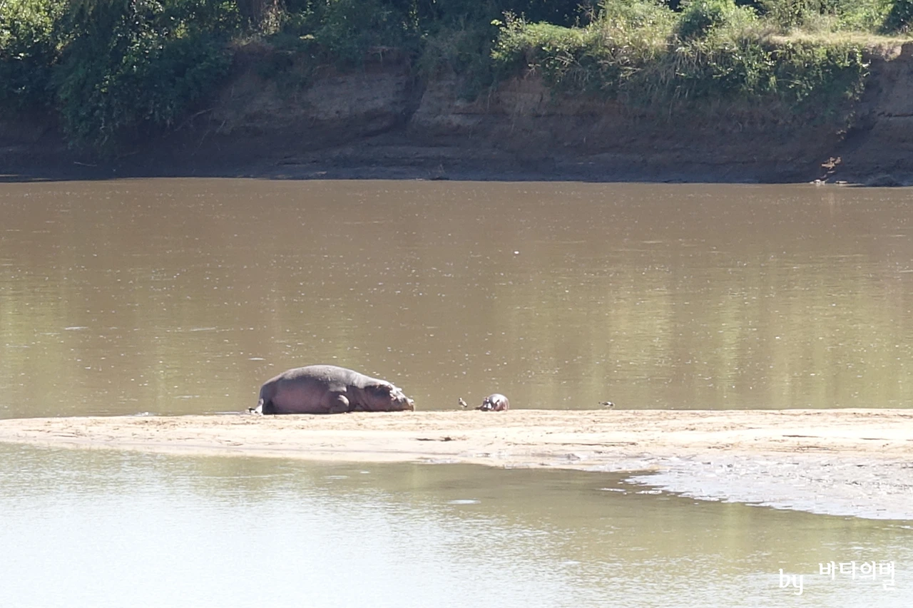 정말 큰 하마 한 마리와 새끼 하마 한 마리가 나란히 물 밖에 나와 누워있었다. 이렇게 물 밖에 있는 하마를 본 건 처음이라 다들 호들갑이었다.