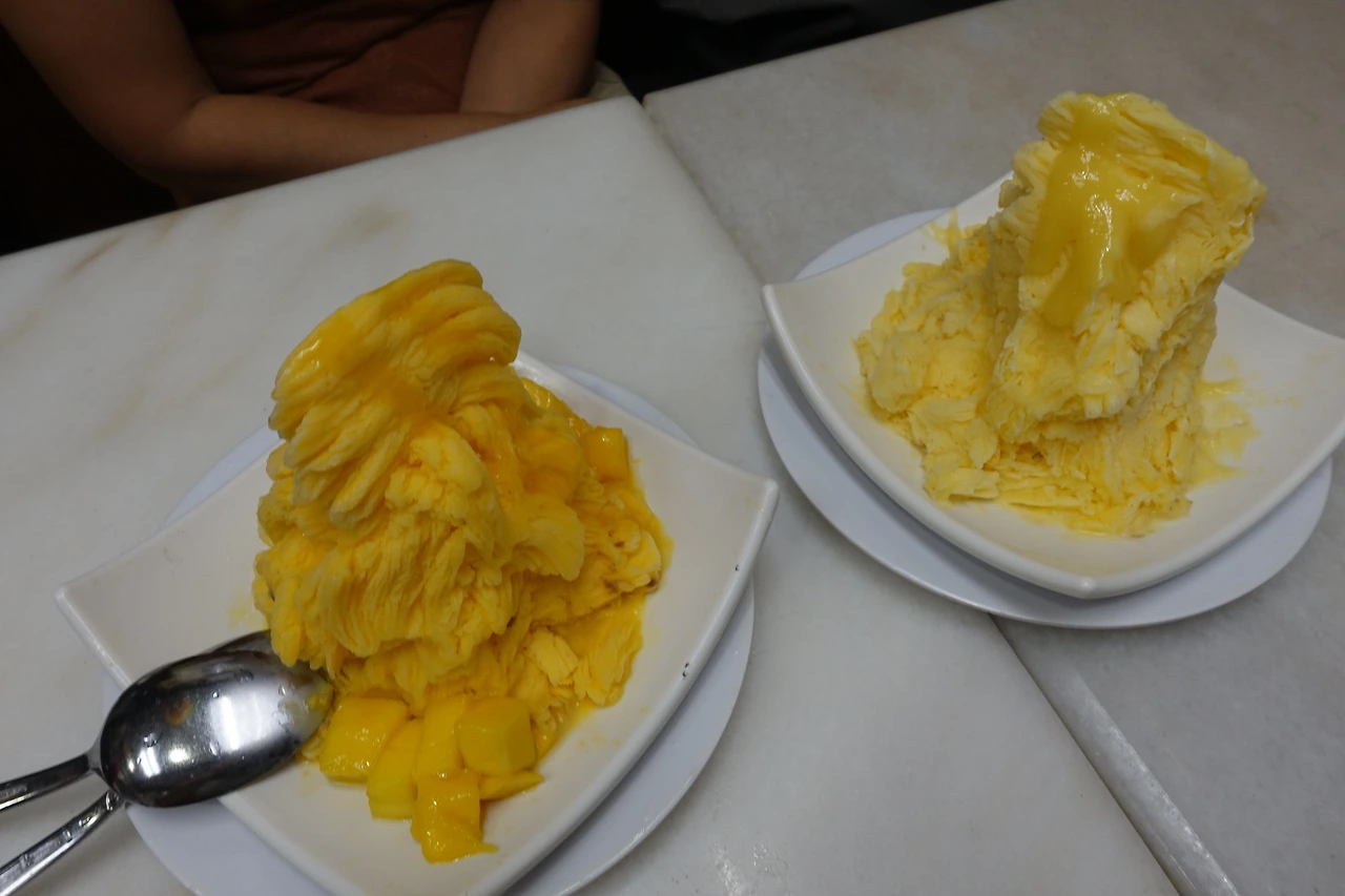 더위를 조금 더 식히기 위해 차이나타운에 가서 빙수를 사 먹었다. 물론 유명한 육포도 샀다. 우리는 진한 노랑의 망고 빙수와 덜 진한 노랑의 두리안 빙수를 주문했다. 나는 두리안을 좋아하지 않지만 아빠는 입맛에 잘 맞으신다고 하셨다.