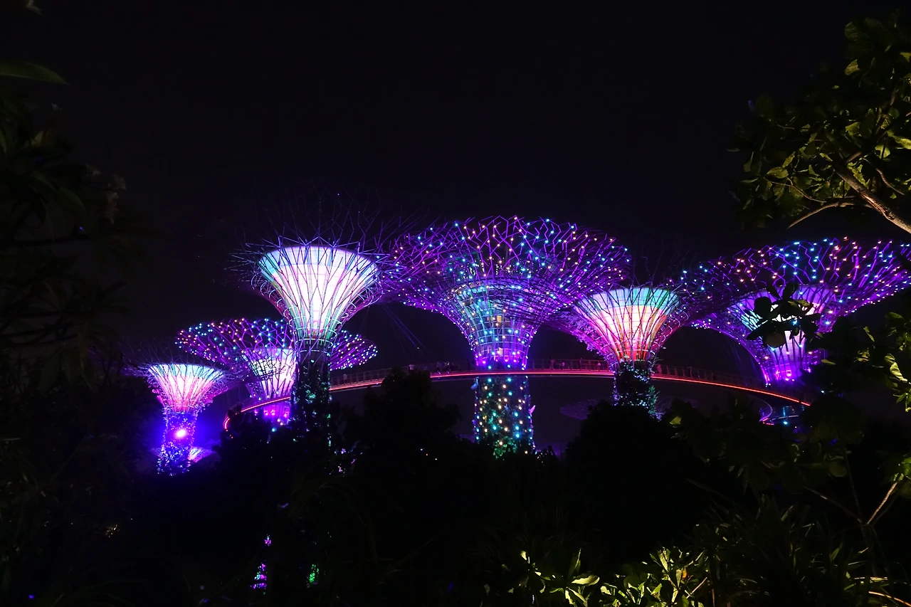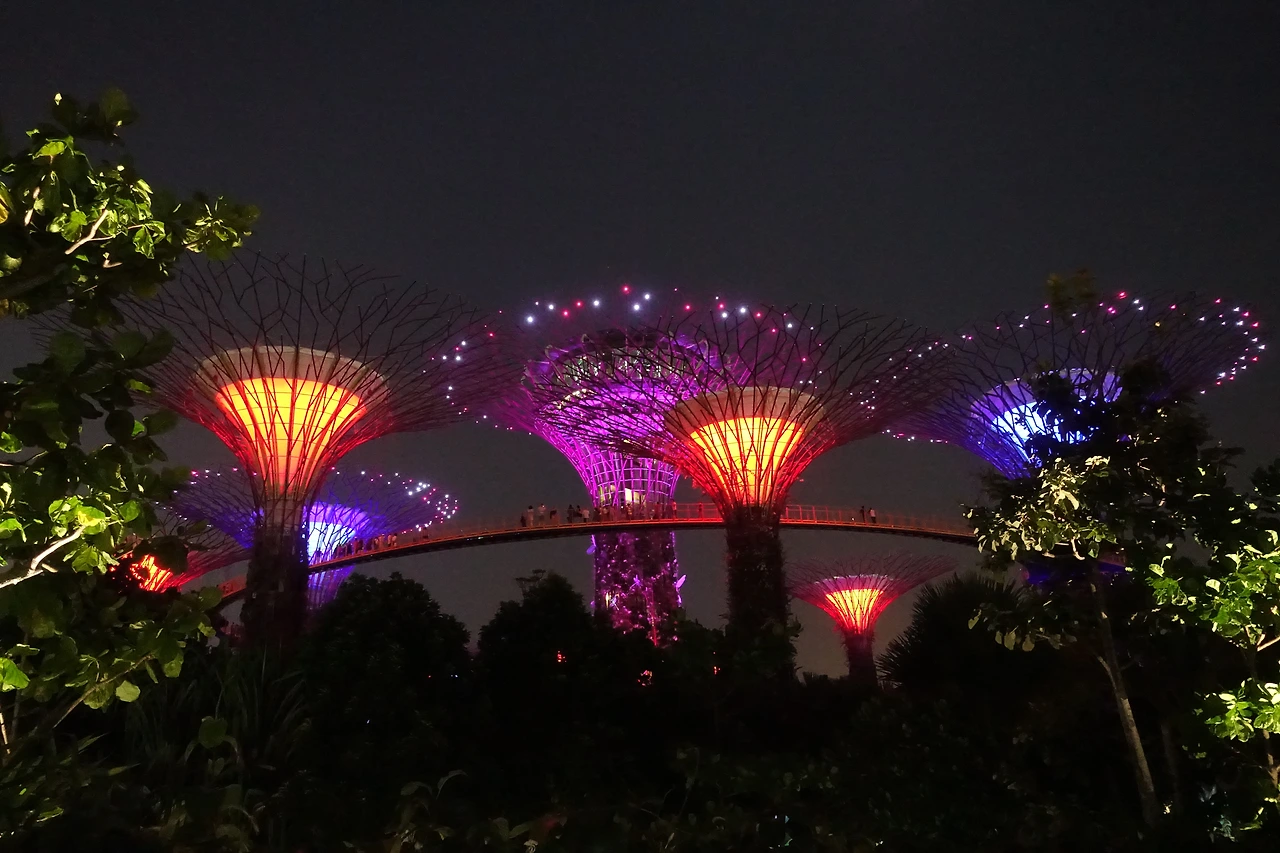 슈퍼트리라는 이름의 독특한 인공 나무들에 형형색색의 조명이 들어오자 미래도시 같기도 했다. 입구 근처는 사람이 많아 붐볐지만, 조금 걷다 보니 한산한 공간이 있어 그곳에서 편하게 보았다.