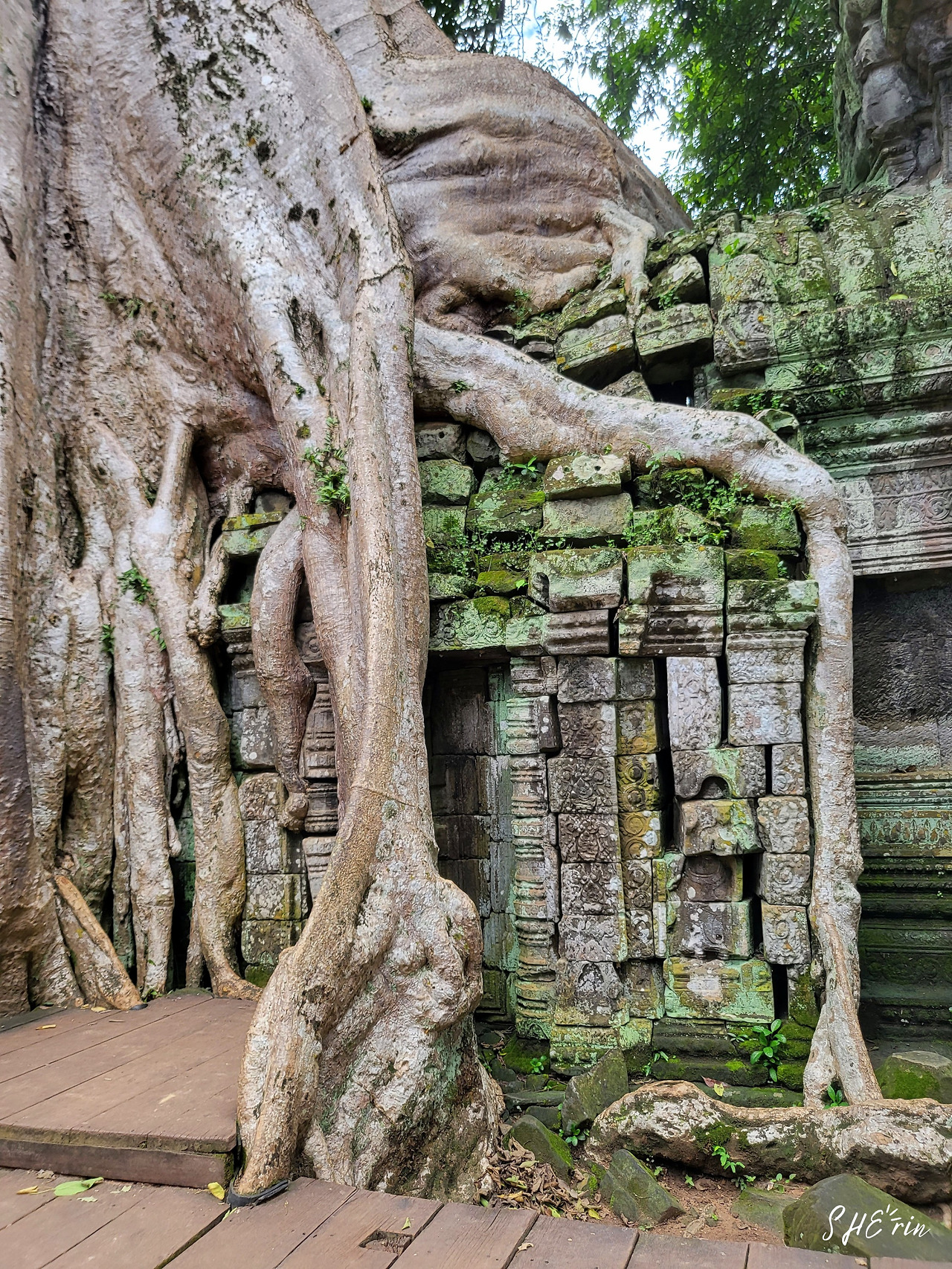 사원 보존을 위해 나무를 떼어내 보려는 시도도 있었다고는 하나, 서로가 서로를 지탱하고 있어 분리할 경우 사원도 함께 무너질 우려가 있어 결국 이렇게 계속 공존하게 되었다. 나무들이 사원에서 자라난 모습은 자야바르만 7세의 마음이 피어나는 모습 같기도 했고, 그 마음에 화답하는 자야바르만 7세의 부모인 다란인드라바르만 2세와 스리 자아라자쿠다마니의 마음 같기도 했다.