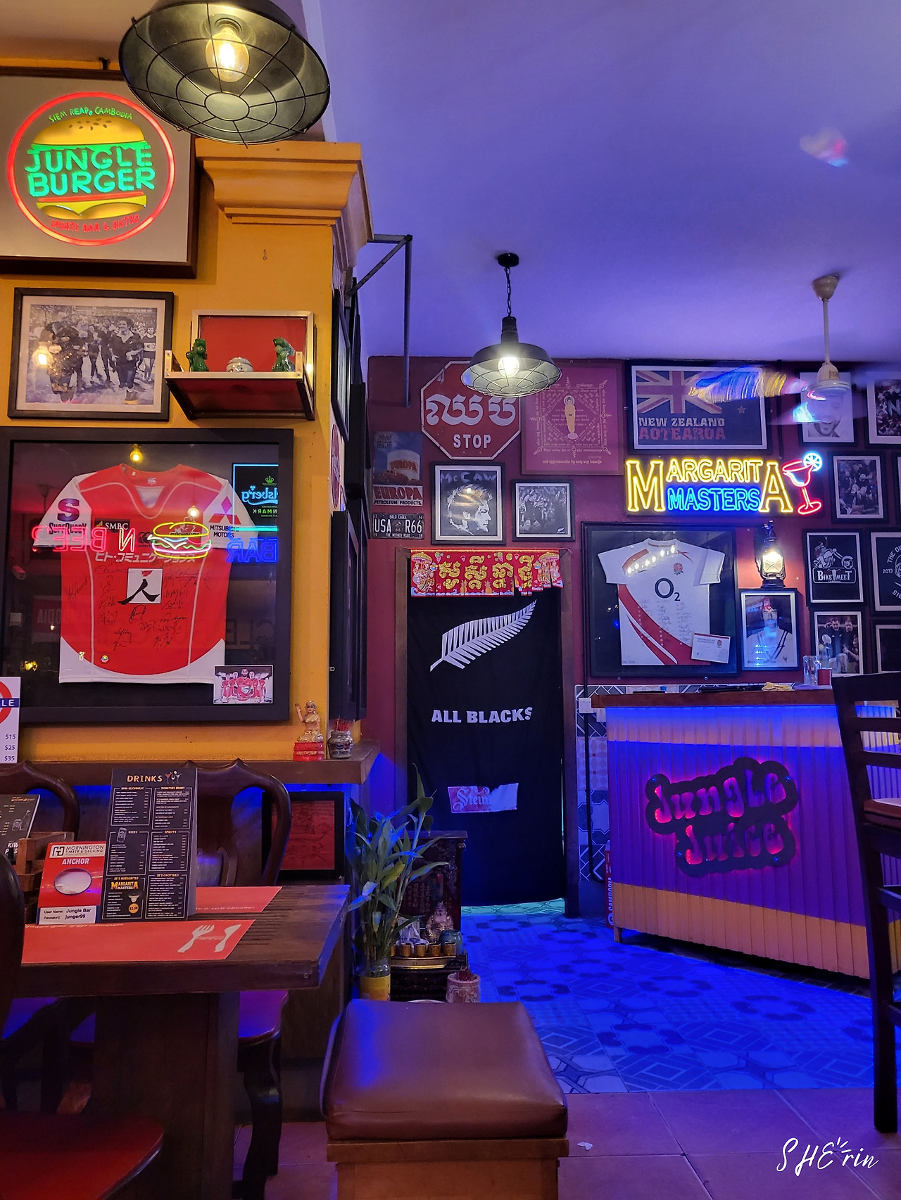 둘째 날 저녁, 햄버거를 먹으러 갔다. 캄보디아에서 머문 동안 먹었던 유일한 서양 음식이었다. 호텔 바로 위치한 곳인데 좋은 후기가 많이 보여서 들러보았다. 주인이 서양인이라더니, 분위기가 딱 미국이나 호주의 바 느낌이었다. (나중에 알고 보니 뉴질랜드 사람이라고 했다.) 텔레비전에는 럭비 경기가 틀어져 있었고, 손님들도 대부분이 서양인이었다.