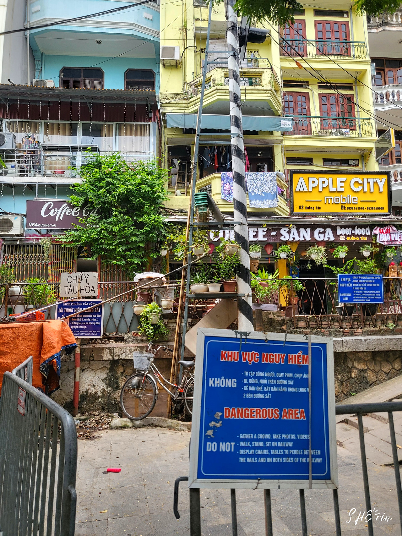 결국 우리는 호객행위를 모두 거절하고, 계속 뒤쫓아오는 사람들도 피했다. 그런데도 왠지 그들이 우리를 계속 따라오는 것 같았는데, 알고 보니 우리가 피해 들어선 골목이 카페 직원들이 손님을 데리고 들어가는 바로 그 길목이었던 것이다. 조금 더 걸어가니 철문이 하나 있었다. 기찻길 안전 관련해서 조심하라는 경고문이 하나 붙은 작은 철문이 바로, 기찻길 카페들로 들어갈 수 있는 관문이었다.
