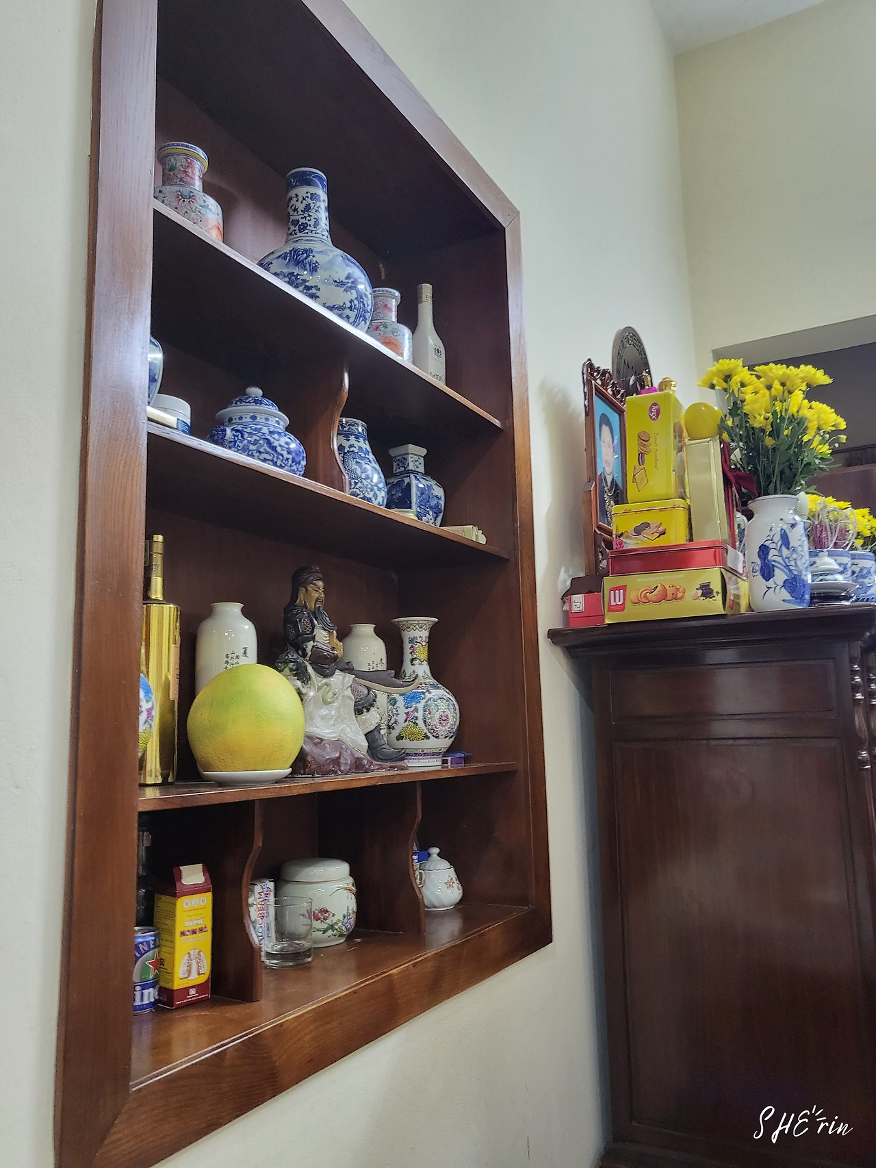 대로변에서는 쉽게 눈에 띄지 않는 곳이라서, 누군가가 찍어둔 입구 사진을 참고하여 찾아낼 수 있었다. 간판 아래 좁은 길을 통해 뒷건물로 이동한 뒤, 오른쪽 계단으로 올라갔다. 왼쪽에는 주방이 있었고, 오른쪽에는 먹을 공간이 있었다. 그런데, 식당이라고 불러도 될지 잘 모르겠을 정도로, 정말이지 남의 집 거실에 온 느낌이 들었다. 가정집 분위기의 식당이라기보다는 그냥 가정집 같았다. 어릴 적 친구 집에 놀러 와 밥 먹는 기분이었달까.
