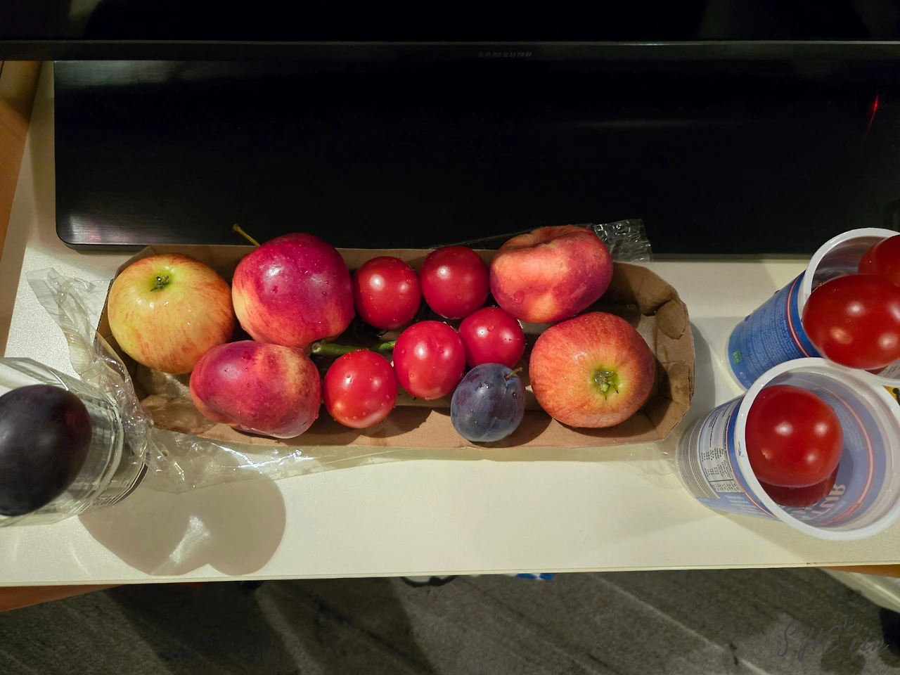 호텔에 들어오니까 모두가 기진맥진해져서 아무 데도 다시 나가고 싶지 않았다. 그 누구도 식사에 대한 욕구도 없었고, 먹으러 갈 힘도 없었다. 대신 마트에서 사 온 과일을 먹었다. 다행히 납작 복숭아와 토마토와 보랏빛 플럼 자두 모두 맛있었다. 납작 복숭아는 그동안 백도 같은 것만 먹어봤었는데, 천도복숭아 같은 건 여기서 처음 먹어보았다. 시원하고 달콤한 과일을 베어 먹으니 기운을 좀 차릴 수 있었지만, 여전히 밖으로 나갈 의지까지는 주지 못했다.