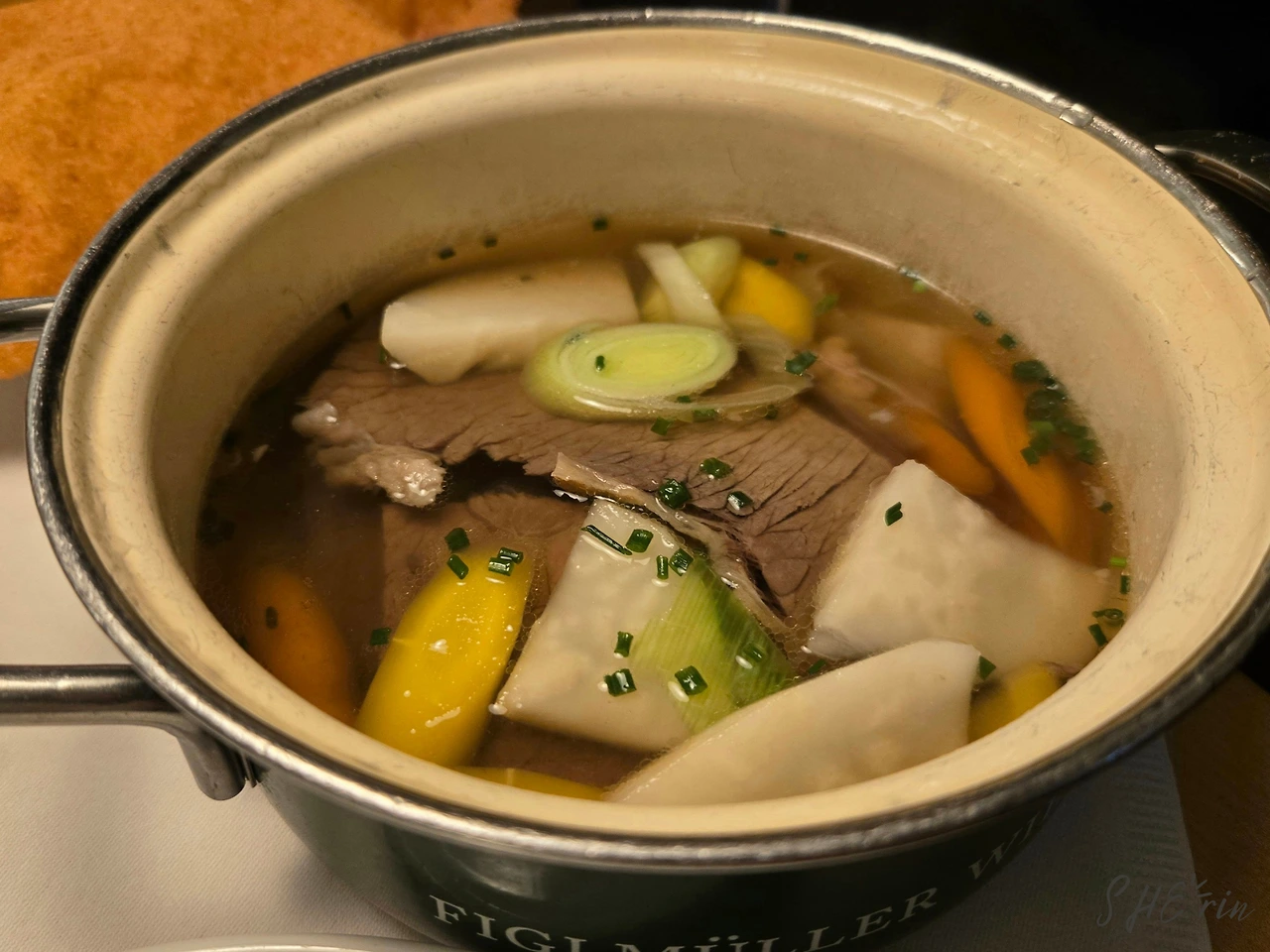 힘들게 기다려서 간 식당은 다행히 만족스러웠다. 그저 납작한 돈가스라고만 생각했던 슈니첼이었는데, 유명 맛집에서의 슈니첼은 이번에 오스트리아에서 먹은 모든 음식을 통틀어 가장 맛있었다. 담백하면서도 촉촉했고, 사이드로 함께 주문한 감자샐러드까지 이렇게 특별할 수 있나 싶을 정도로 맛있었다. 함께 주문한 타펠슈피츠는 고기와 야채를 넣고 끓인 스튜로 갈비탕 같았는데, 뜨끈해서 몸을 녹여주고 속도 개운하게 해 주었다.
