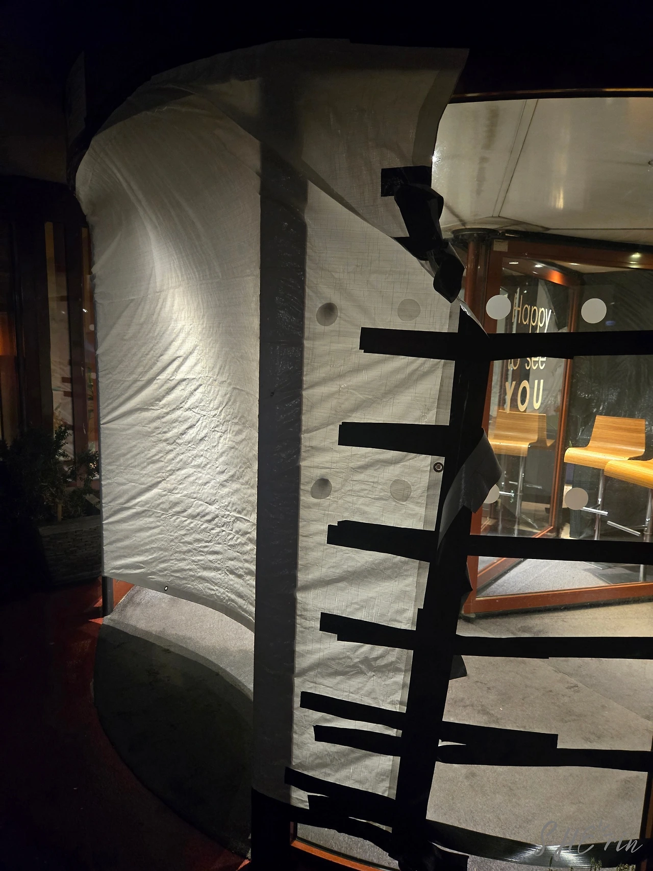 지하철을 타고 내릴 곳을 한 정거장 지나치는 바람에 쓸데없이 시간이 더 소요되었고, 도착한 호텔 정문 입구는 폐쇄되어 있었다. 비바람에 회전문이 깨진 모양이었다. 반대편 입구로 오라는데, 그 반대편이 어딘지 몰라 한참을 헤매다 겨우 들어갔다.