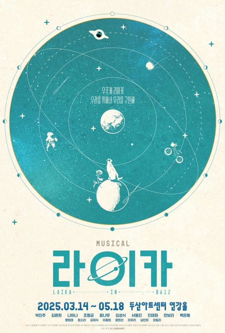 ▷ 개요 : 올해 초연된 국내 창작뮤지컬로, 냉전시대 소련에서 스푸트니크 2호에 탔던 우주개 라이카의 실화와, 생텍쥐페리의 소설 <어린 왕자>를 접목한 이야기다.