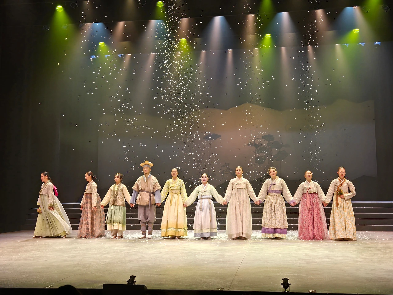 이어서 공연된 건 <덴동어미 화전가>였다. 내방가사에서 영감을 얻어 만들어졌다고 하는데, 웃음을 많이 유발했던 <옹처가>와는 반대로 잔잔하고 차분했다. 제목 속 '덴동어미'는 화상을 입은 아이의 엄마라는 뜻으로, 주인공이 살아오면서 어떤 어려움을 겪고 어떤 절망을 이겨내야 했는지를 보여주는 작품이었다. 과거를 무대로 과거의 이야기를 풀어냈지만, 비극 속에서도 삶을 이어갈 수 있는 희망 한 줄기와 주변 인연들의 힘처럼, 현대에도 공감할 수 있는 가치를 지니고 있었다. 세련된 음악과 폭넓은 감정들이 어우러져, 깊고 따뜻한 여운을 남겼다.