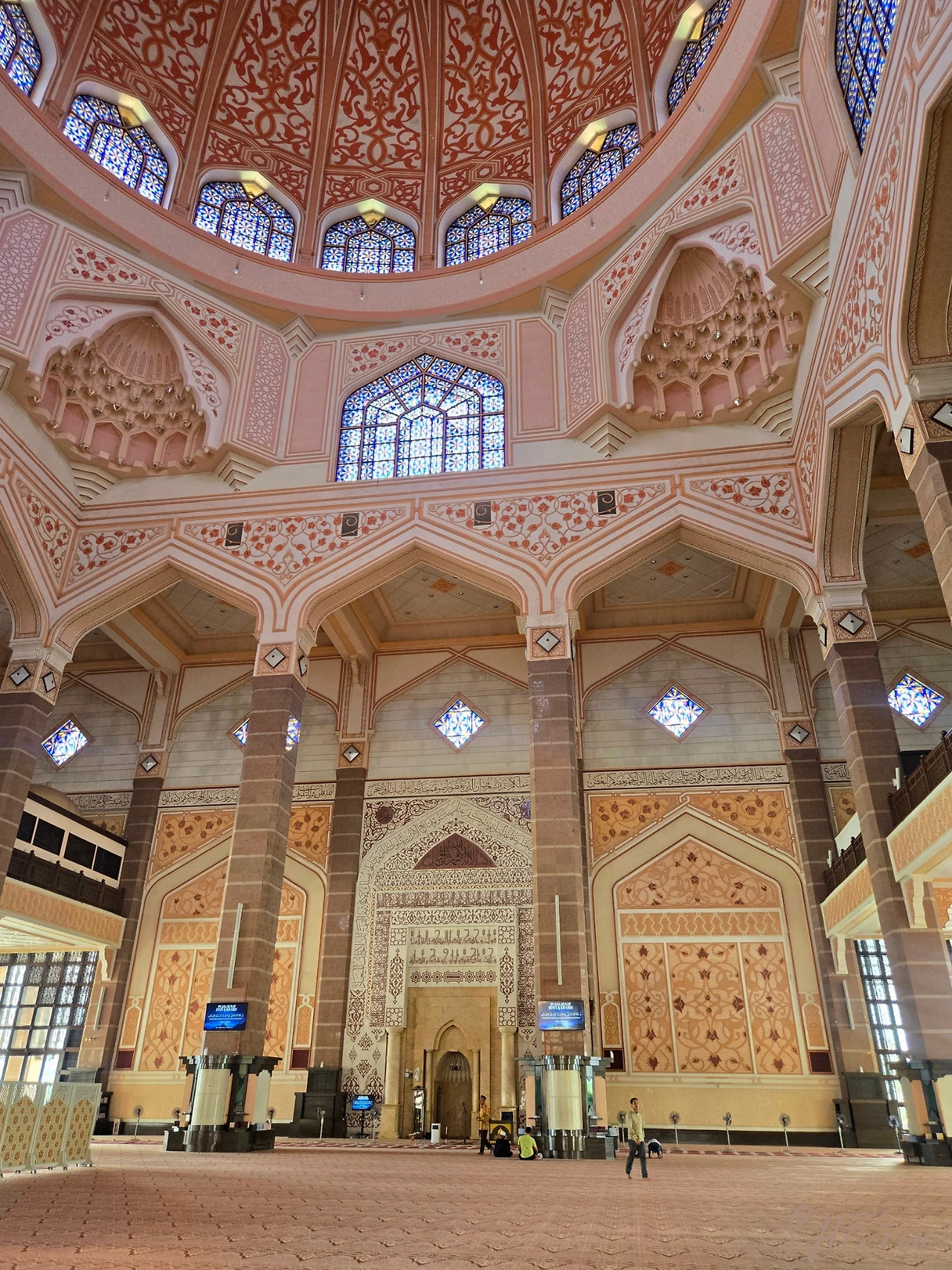 푸트라자야에서 우리나라 관광객들에게 가장 유명한 곳은 핑크 모스크다. 분홍빛으로 칠해져 있어 포근한 인상을 주는 곳이지만, 실제로는 포근함 보다는 끈적한 무더위의 기억만 남았다. 여자들은 모스크에 입장할 때 호그와트 마법사들이 입는 기다란 로브 같은 걸 입어야 했는데, 머리카락까지 가려야 해서 모자까지 뒤집어써야 하는 데다 옷감마저 도톰해서 너무 더웠다. 대여해서 입는 거라 전 세계 사람들의 땀냄새가 내게 닿는 동시에 나의 땀도 그 속에 섞이는 듯해 어쩔 수 없는 불쾌함을 느꼈다. 그래도 독보적인 색감의 모스크는 겉에서나 안에서나 예뻤다. 로브는 그렇지 못했지만.