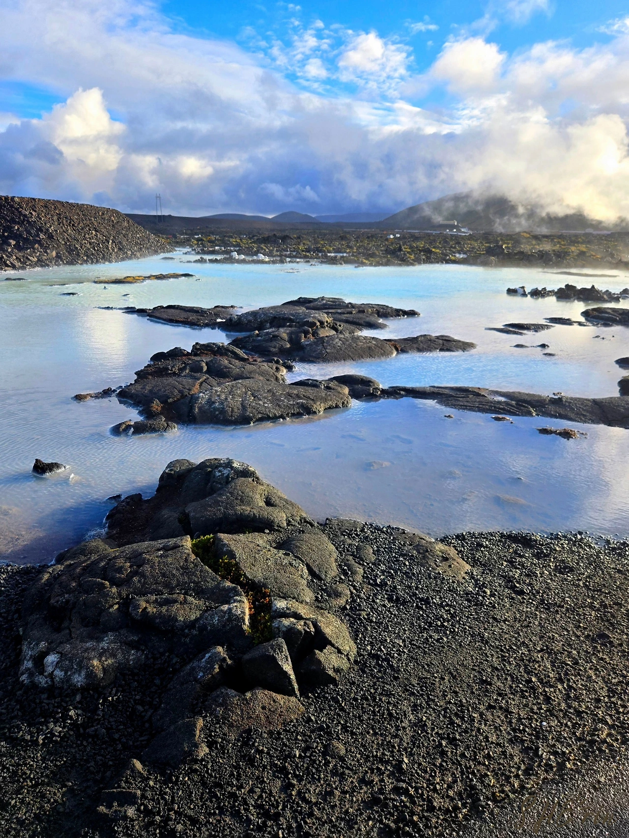 하지만 블루라군은 그럼에도 여전히, 아이슬란드 하면 빠질 수 없는 명소다. 밀키스 색처럼 푸르스름한 우윳빛의 물이, 곳곳의 검은 용암 바위들과 진한 대비를 이루는 곳. 생각보다 거대해서, 2시간 동안 머물러도 지겹지 않은 큼직한 공간.