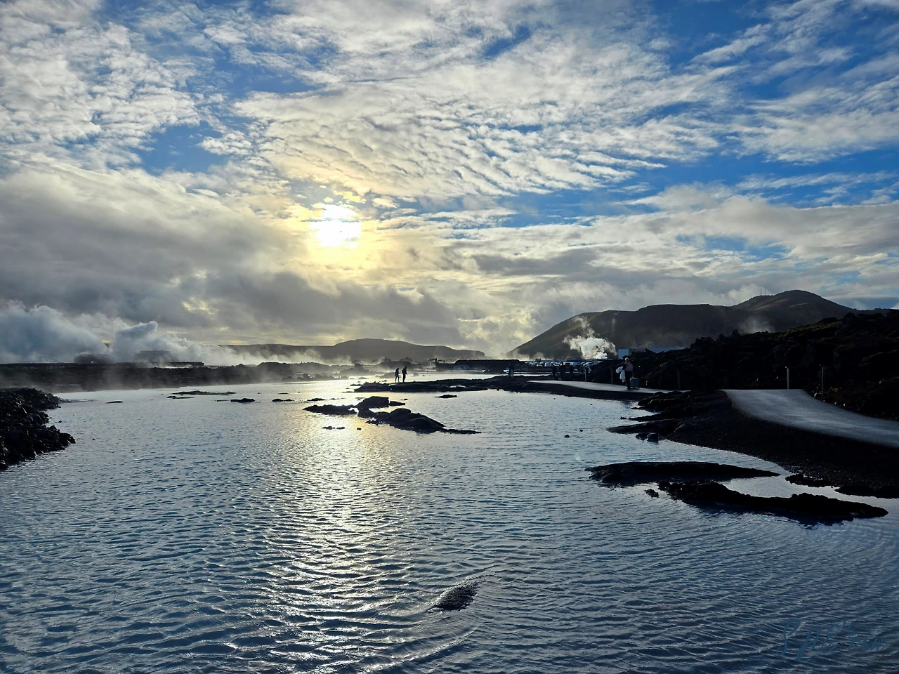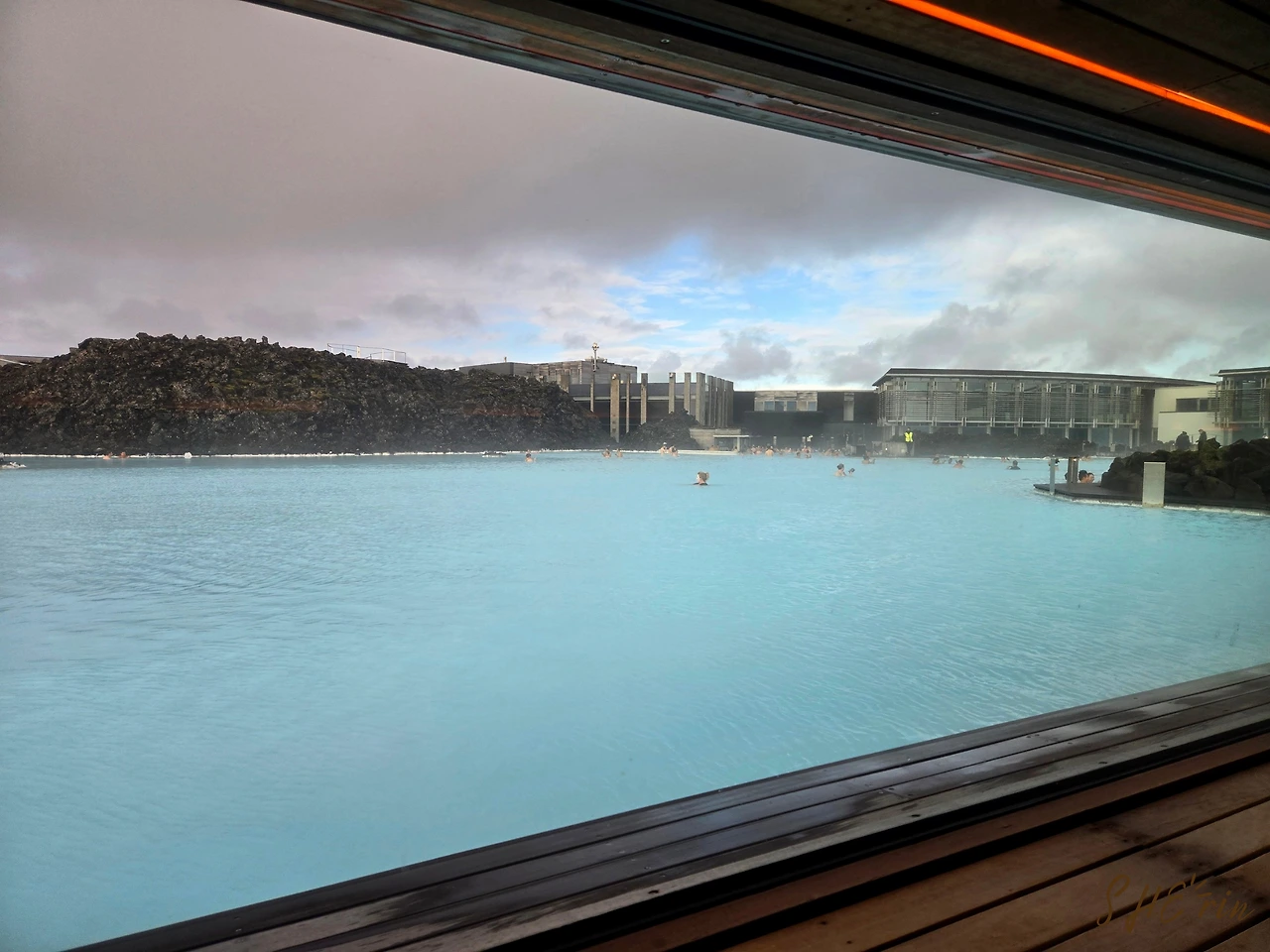 블루라군은 레이캬비크 시내에서는 40분 정도 소요되지만, 공항에서는 20분이면 갈 수 있어 입출국 일정에 맞추어 들르는 사람들이 많다. 10년 전에는 마지막날 들렀는데, 이번에는 맨 처음으로 간 곳이 되었다. 버스에서 내려 큰 캐리어는 보관소에 맡겨두고, 물과 화산석 사이 길을 걸어 온천으로 향했다.