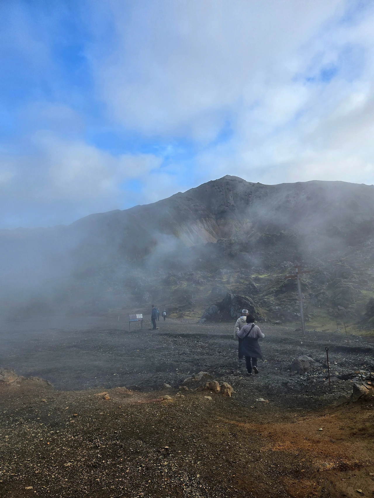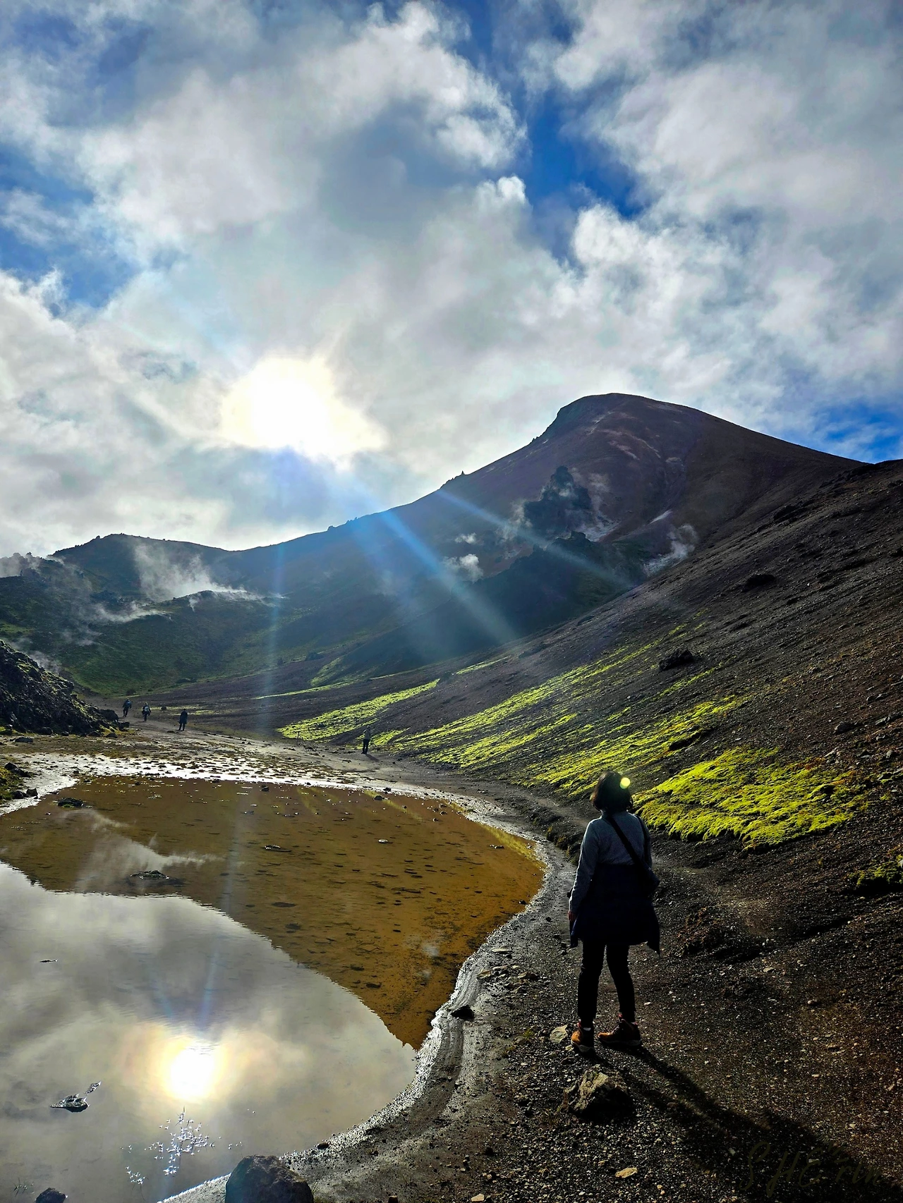 1시간 반 가량의 시간 동안, 우리는 검은 화산석들과 연둣빛 이끼들을 지나고, 곳곳의 물 웅덩이에 비친 풍경을 사진 속에 담고, 모락모락 짙은 안개처럼 올라오는 지열을 통과했다.