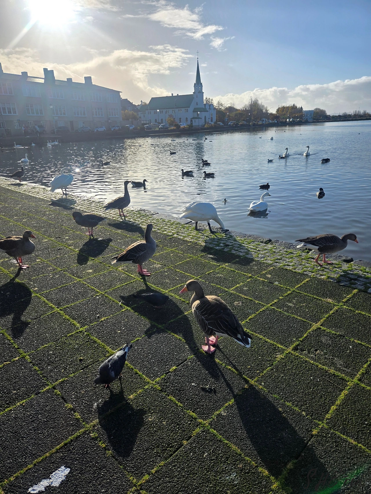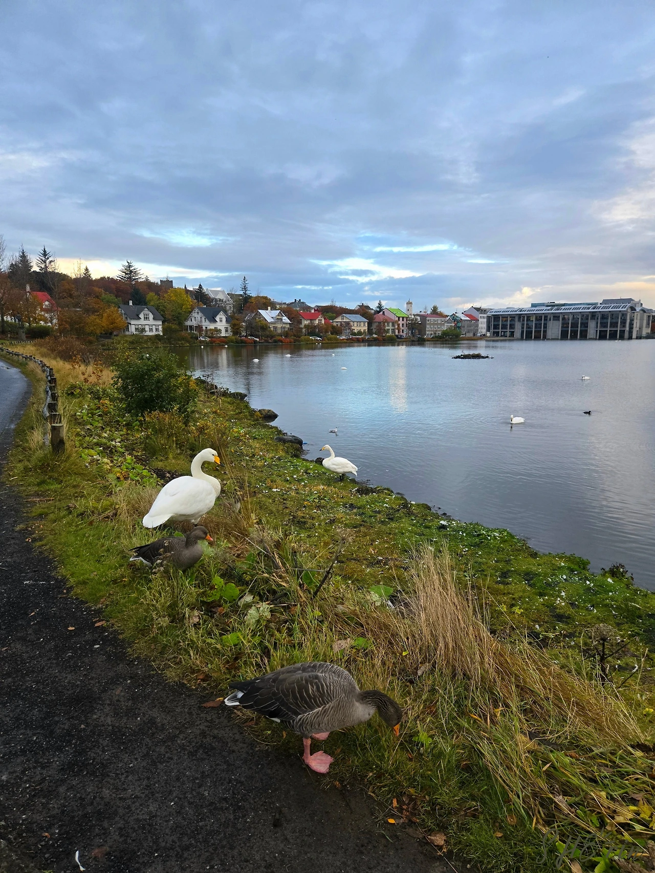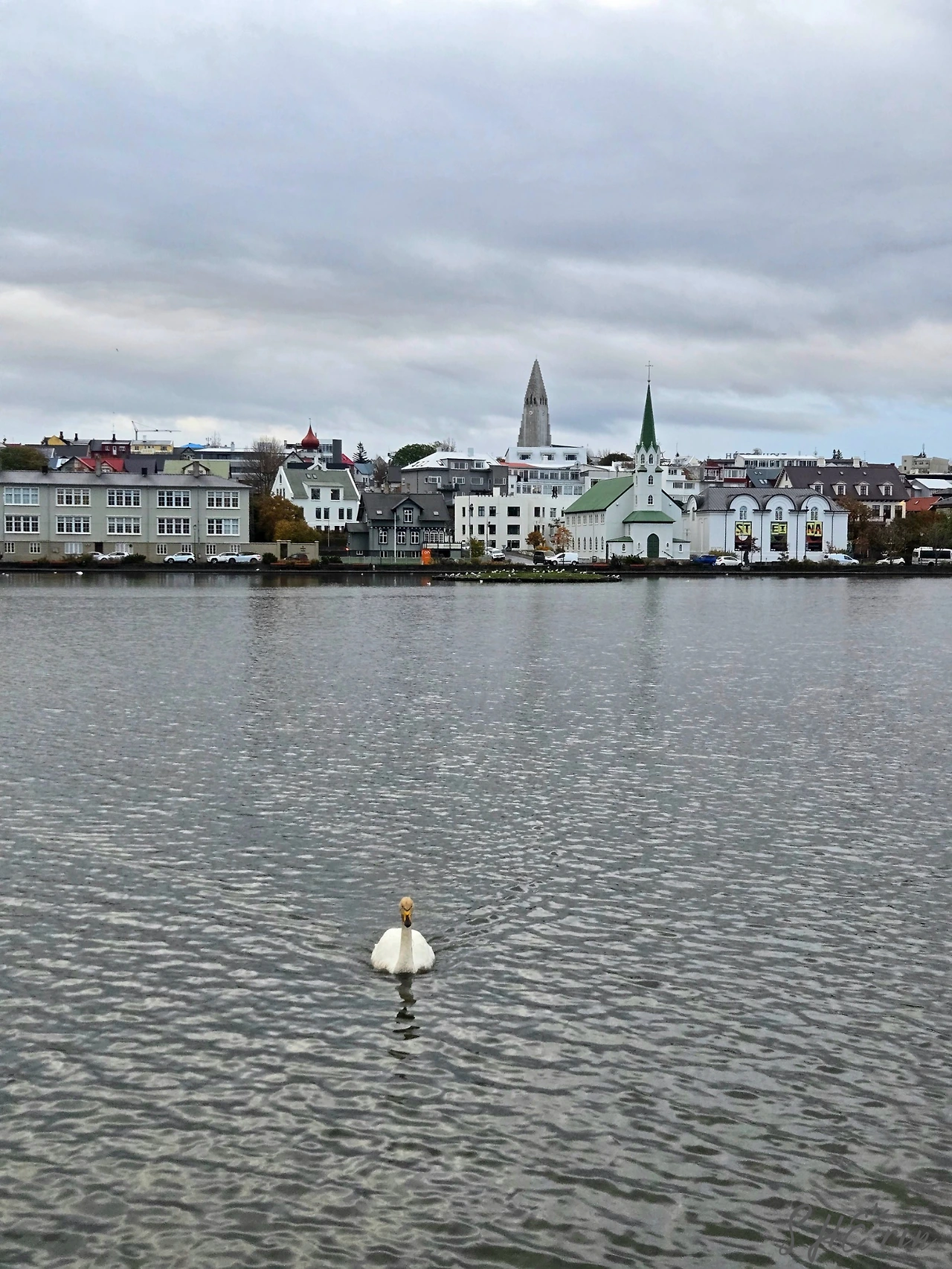 트요르닌 호수는 걷기 좋은 호수로, 호숫가에는 집들과 레이캬비크 시청이 위치해 있다. 평일 오전 9시에 산책 나온 사람들은 우리밖에 없었다. 오리와 백조 들이 많이 사는 곳이라, 사람들이 자꾸만 먹이를 던져주다 보니 '세상에서 가장 큰 빵수프'라는 별명이 있다고 한다. 귀여우면서도 왠지 더럽게(?) 느껴지지만, 호수 자체는 맑아 보였다.