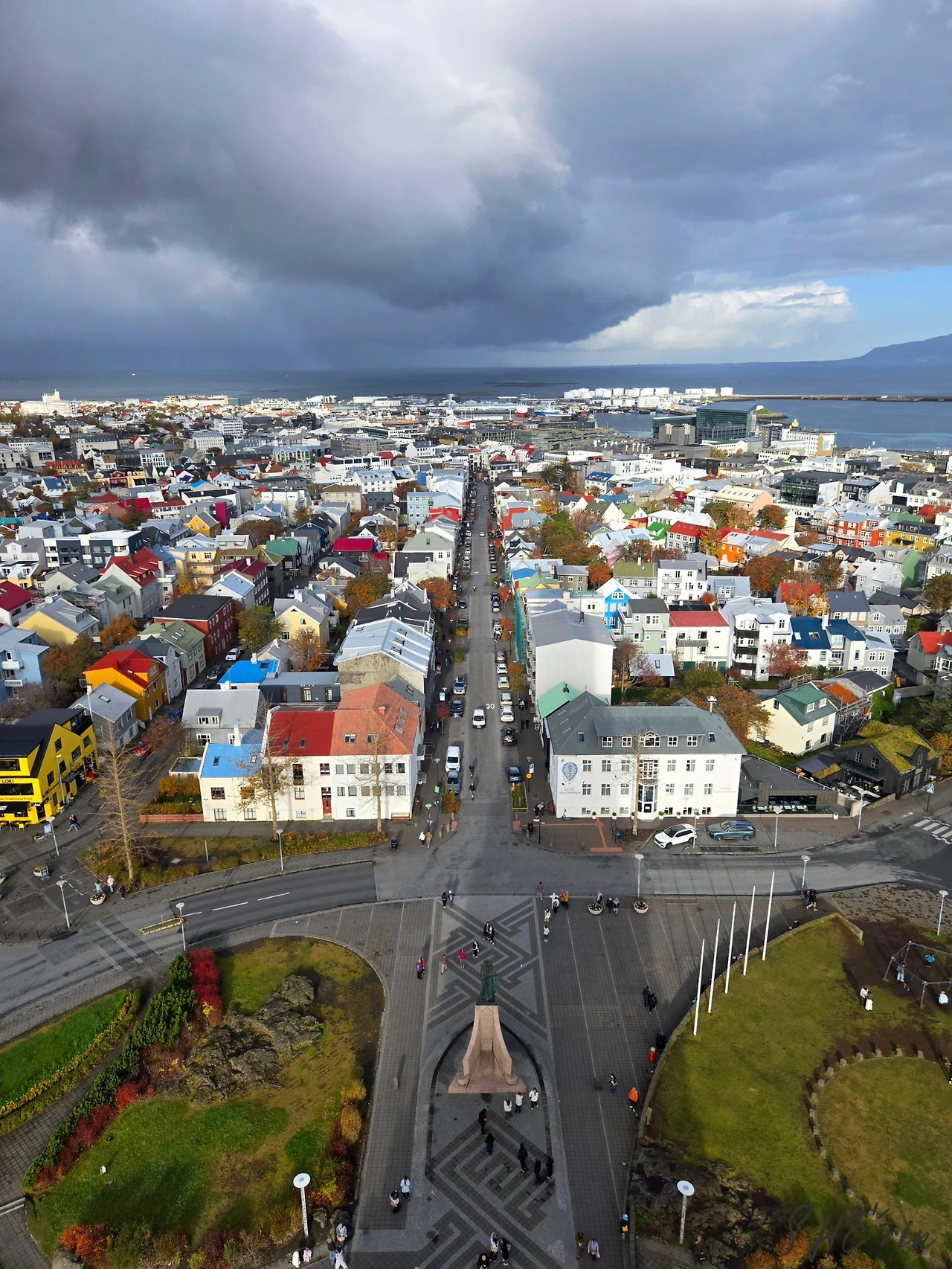 이곳의 풍경은 시내 명소인 할그림스키르캬 교회에 올라가면 더 잘 내려다보인다. 구름이 조금 걷혔으니, 전망대에 올라가 보아도 괜찮을 시간이 된 듯했다. 가는 길에는 일부러 트요르닌 호수를 다시 살짝 들러, 낮 햇살을 맞아 더 활기 있어진 풍경을 한 번 더 구경했다.