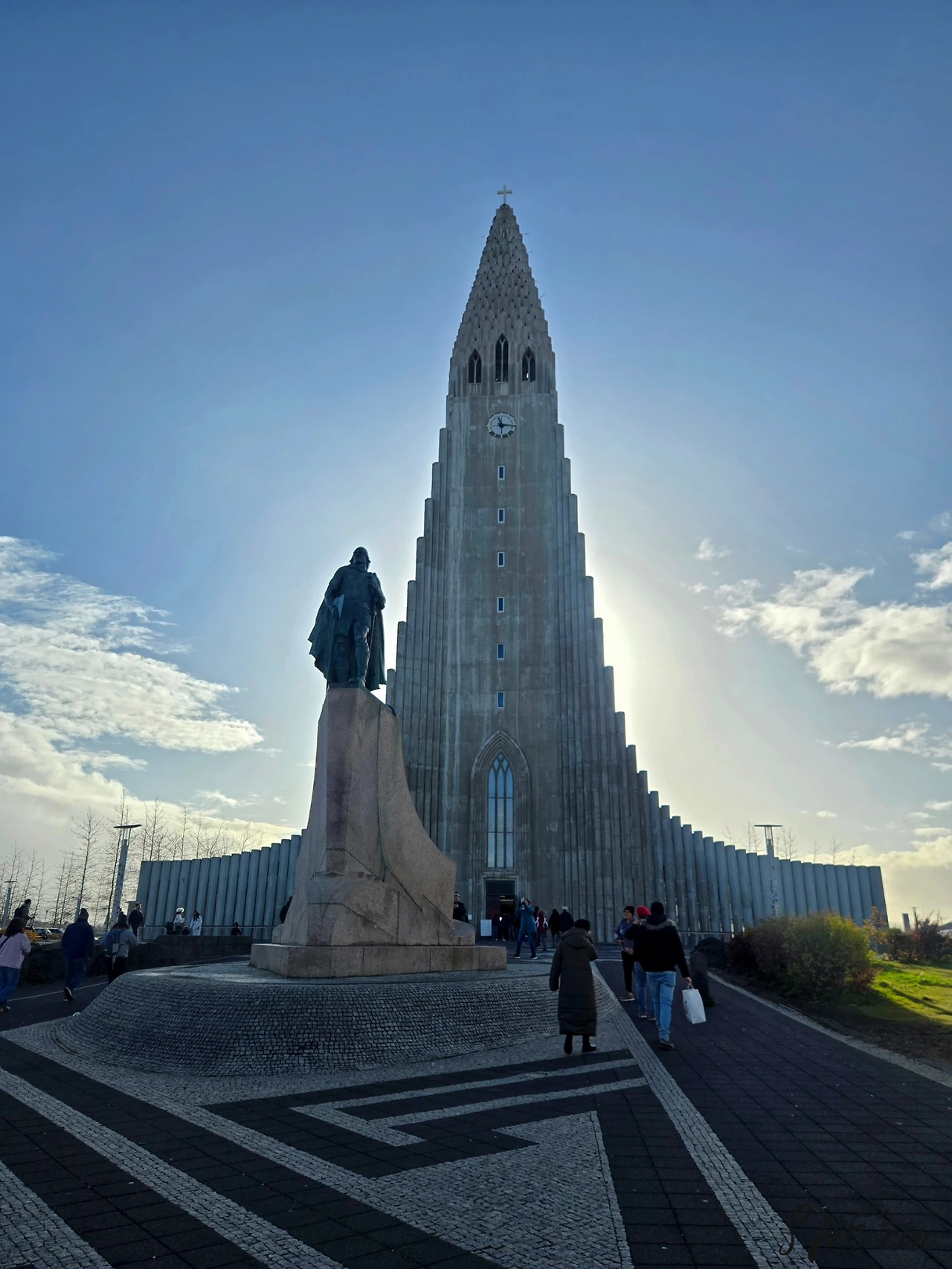 할그림스키르캬는 레이캬비크의 대표적인 명물로 꼽힌다. 오르간 파이프에서 영감을 받은 모양이 매우 인상적인 건물이다. 유방암 예방 캠페인의 일환으로 우리가 머문 동안은 밤마다 핑크색으로 빛났는데, 낮에는 여전히 회색흙빛으로 서 있었다.