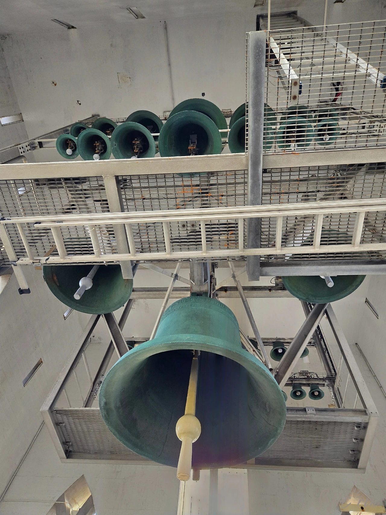 알록달록 레이캬비크 풍경이 너무나 예뻤다. 사면의 모든 창밖으로 고개를 내놓고 구경했다. 정시에는 종이 치는 것도 봤는데, 천장에 달린 종을 기계식으로 치는 거였다. 기계식 종을 이렇게 가까이서 보는 건 처음인 것 같아 신기하게 올려다보았다.