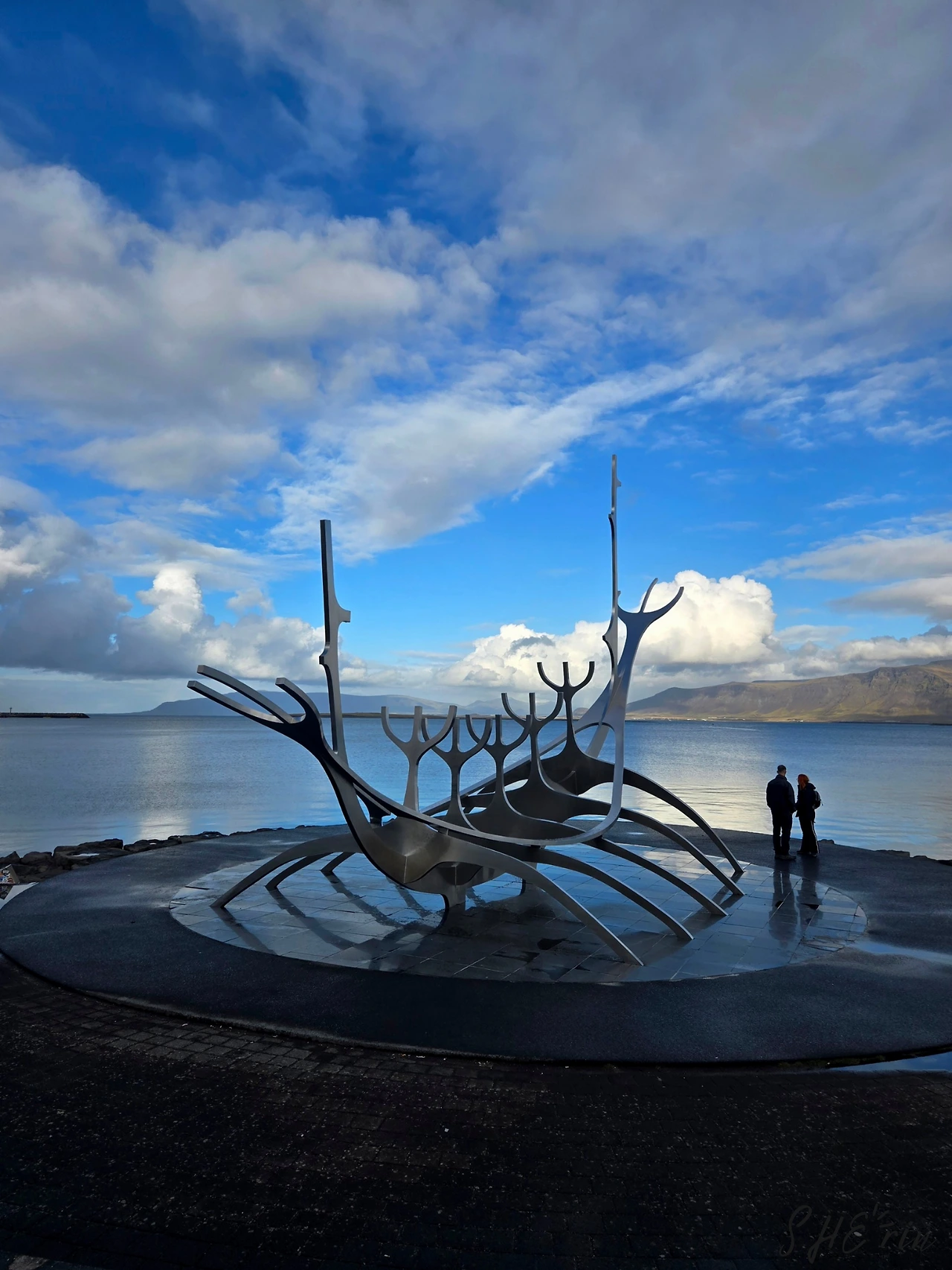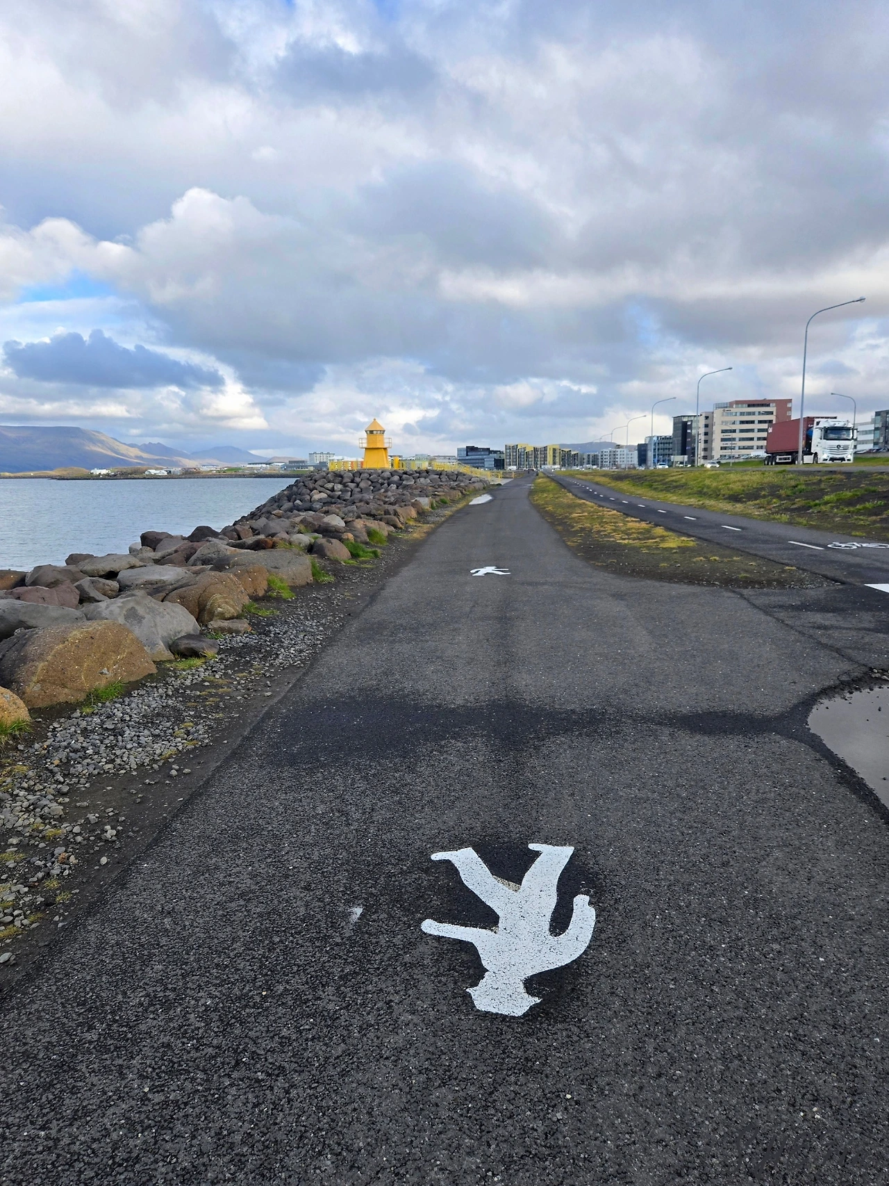 하르파에서 다시 나와 바닷가를 쭉 걷다 보니 선보야저도 보였다. 바이킹 배를 형상화한 듯한 조형물인데, 태양과 희망, 자유의 의미를 담았다고 한다. 처음 봤을 때는 마냥 멋졌는데, 이날 다시 보니 선보야저뿐 아니라 해안가에 쭉 늘어선 소소한 노란 등대들도 함께 눈에 띄었다. 날이 좋아서 산책하기 좋아, 우리는 목적지 없이 계속 걸었다.