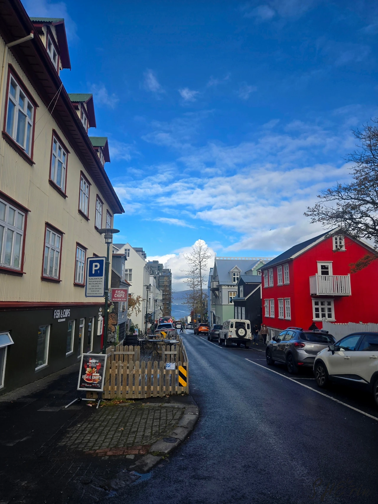 갠 날씨 속에서 노란 회프디 등대를 한적하게 즐기고(중간에 또 한 번 빗방울이 내렸지만), 다시 시내 쪽으로 걸어갔다. 박물관이라든가 더 구경하려면 더 구경할 수도 있었겠지만, 그냥 여유를 즐기는 게 좋았다. 카페에 가보기로 했다.