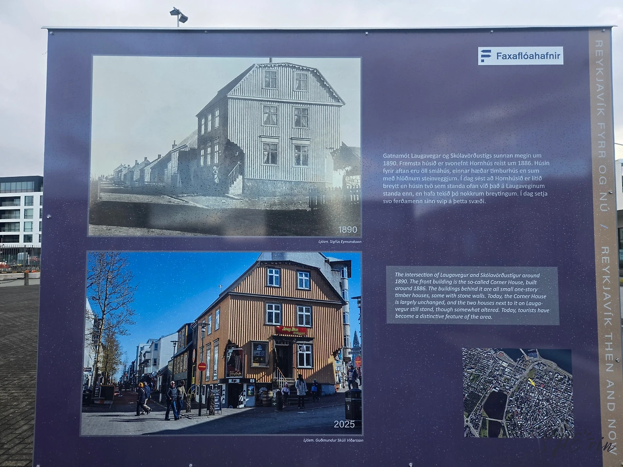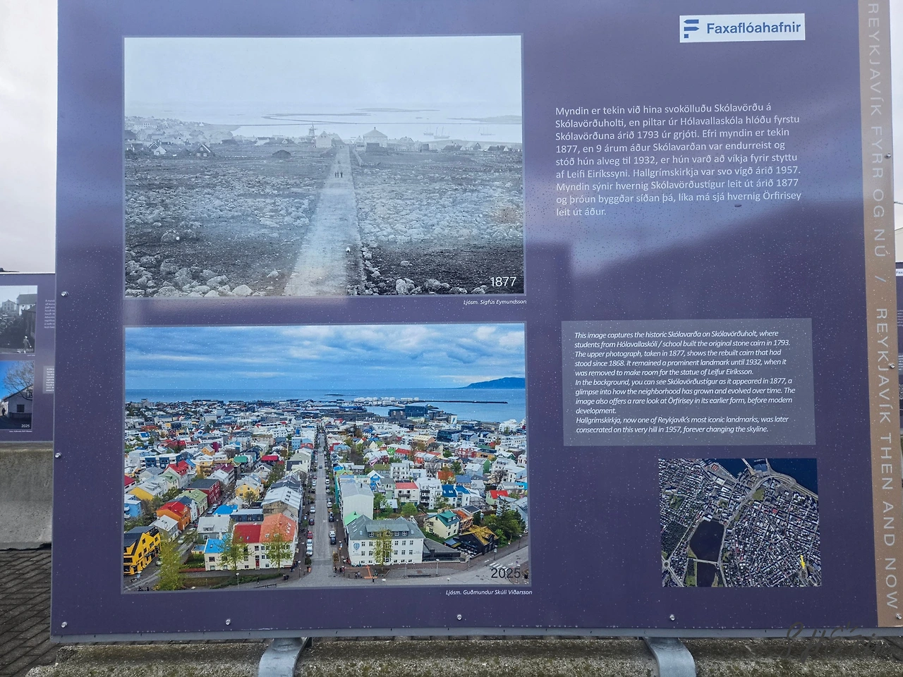 먼발치에서 본 것만으로 만족하고, 다시 밑으로 걸어 내려왔다. 비릿한 생선 냄새가 나던 항구 쪽을 떠나오니 레이캬비크의 옛 풍경들을 사진으로 전시하고 비교해 둔 공간이 있었다. 이런 게 있는 줄도 몰랐는데 여유를 되찾으니 눈에 들어온 행운이었다. 지금 우리가 걸으며 보고 있는 건물들이 대부분 130년 전에도 존재했었다는 사실이 놀랍고도 재밌었다.