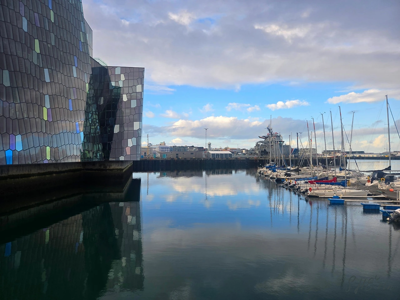 그 뒤에는 바로 콘서트홀인 하르파가 보였다. 하르파 뒤편에는 요트들이 가득 정박되어 있었고 작은 등대도 있었는데...