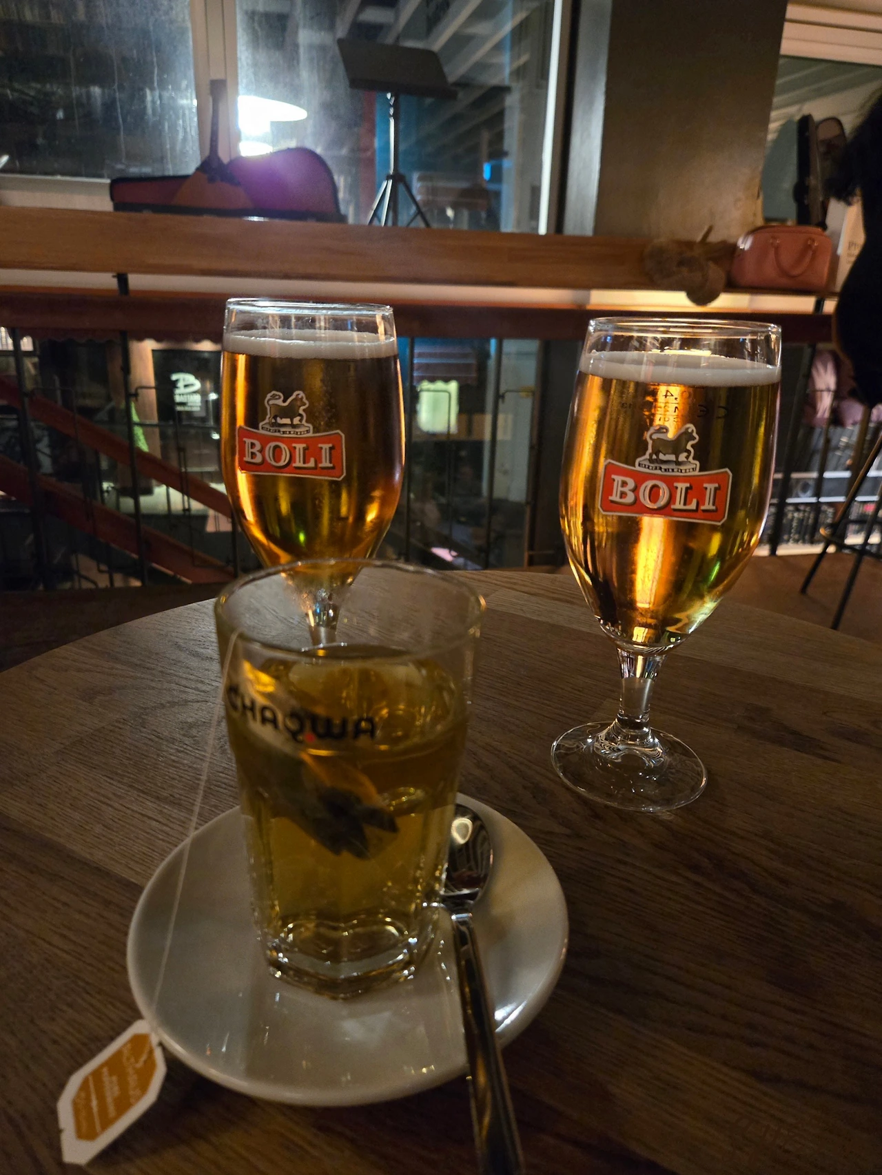 7시 반쯤 갔더니 이미 좋은 자리는 다 차고 없었다. 그래도 근처 테이블에 앉아서 난간 사이사이로 구경할 정도의 자리는 잡을 수 있었다. 8시 부근에 도착한 사람들은 서 있어야 했으니, 이 정도면 감지덕지였다. 아빠와 나는 맥주를 주문하고, 엄마는 페퍼민트티를 주문했다.