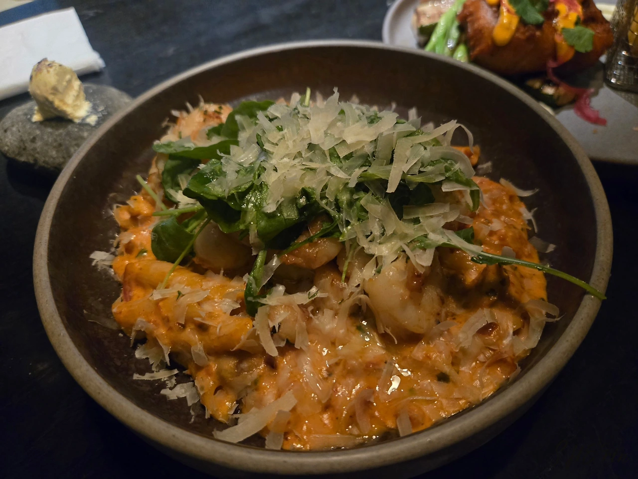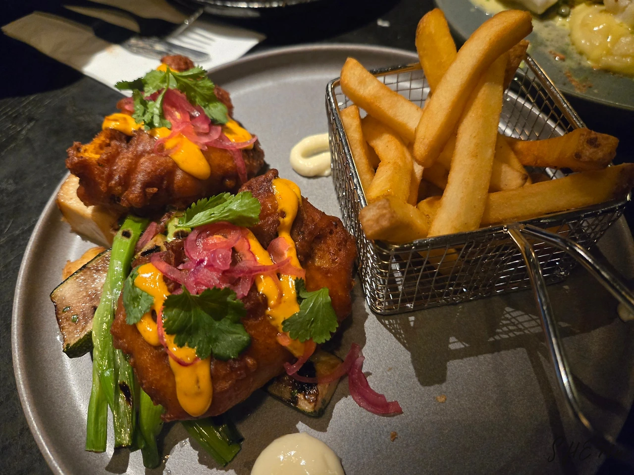그 외 우리 취향껏 주문한 메인 메뉴들도 성공적이었다. '오늘의 생선' 요리는 볼락(ocean perch)과 대구였는데, 부드러운 생선도 함께 나온 매쉬드 포테이토도 맛있었다. 쉘피시 파스타는 로제소스에 새우, 랑구스틴, 관자 등이 들어가 푸짐했고, 해산물 식당답지 않게 '오늘의 요리'였던 치킨 프라이는 의외로 독특하고 맛있었다. 함께 나온 순무 튀김도 인상적이었다.