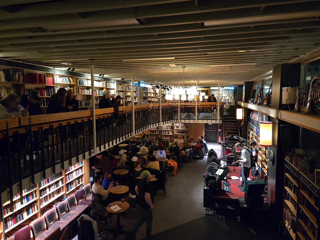바로 뮤직바! 이곳은 서점으로도 운영되지만, 매일 저녁 8시면 라이브 바로 변신하는 곳이다. 한국에서부터 가보고 싶다고 적어놓고 갔는데, 이전에 묵은 호텔 방에서 바로 내다 보여서 신기했던 곳이기도 하다. (그만큼 레이캬비크 시내는 크지 않다) 그 호텔에 묵을 때 밤마다 음악소리가 들렸는데 그래도 10시 넘으면 조용해지곤 했었다.