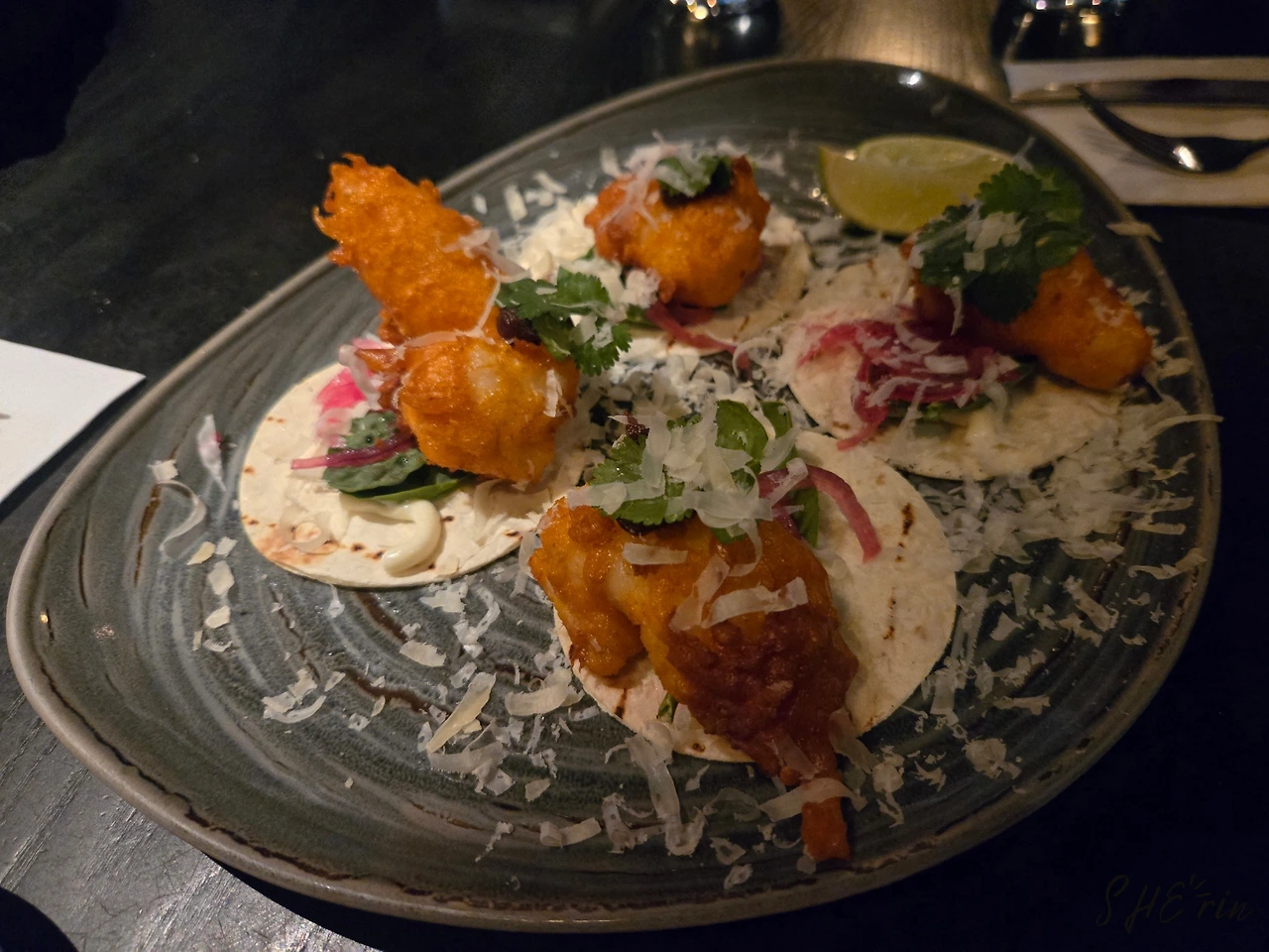 그리고 그건 이날 한 최고의 선택이었다. 처음에 한 접시만 주문했더라도 분명 한 접시 더 추가했을 것이다. 랍스터가 입에서 녹았다. 튀긴 살이 어떻게 입에서 녹아내리는지는 알 수 없었다. 적당히 얇고 적당히 쫄깃한 또띠아 위에는 살살 녹는 랍스터튀김, 치즈, 그리고 고수 등이 어우러졌는데, 조합이 환상적이었다.