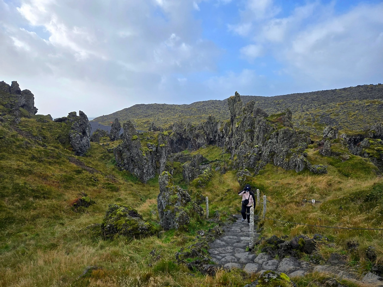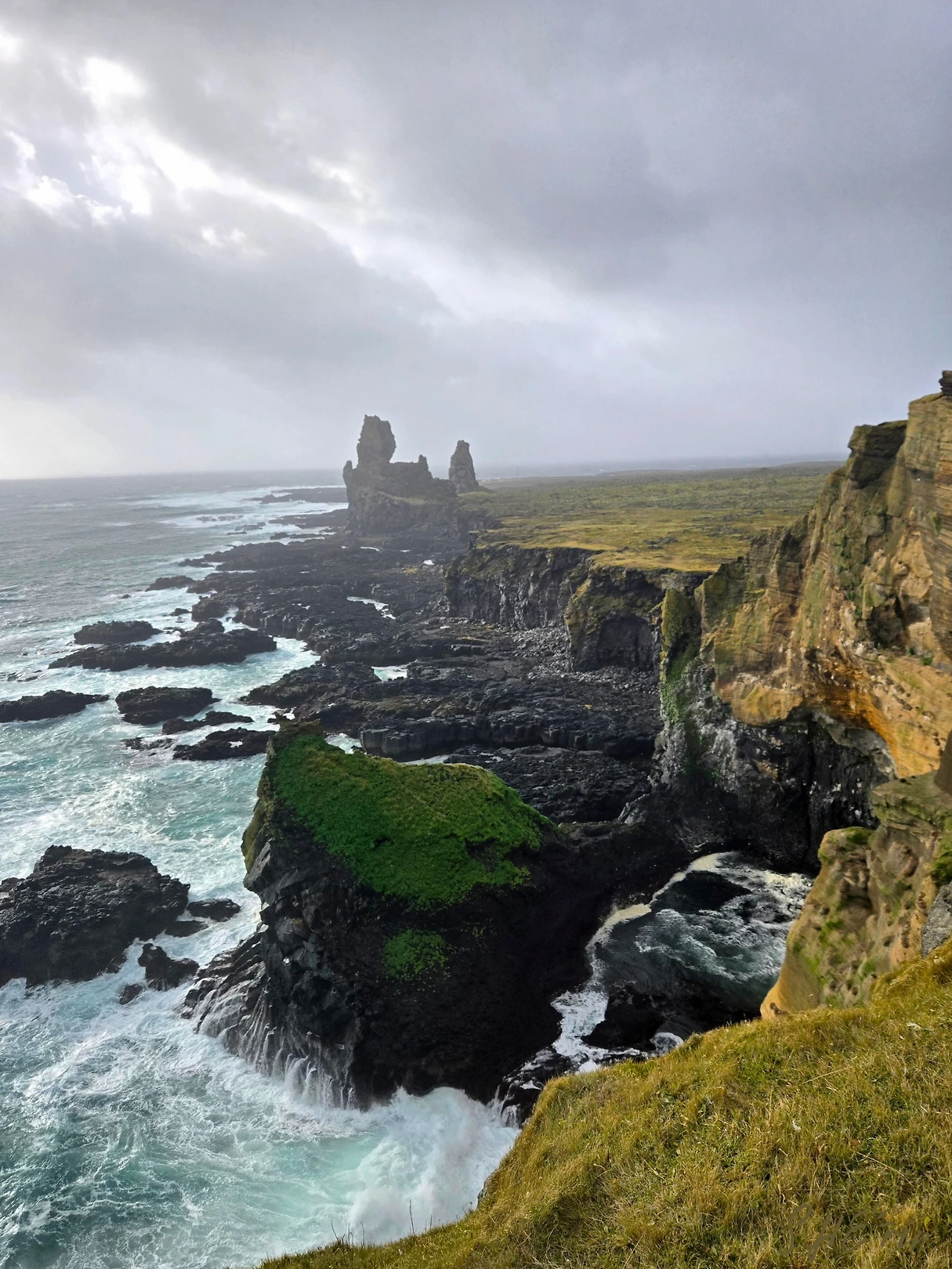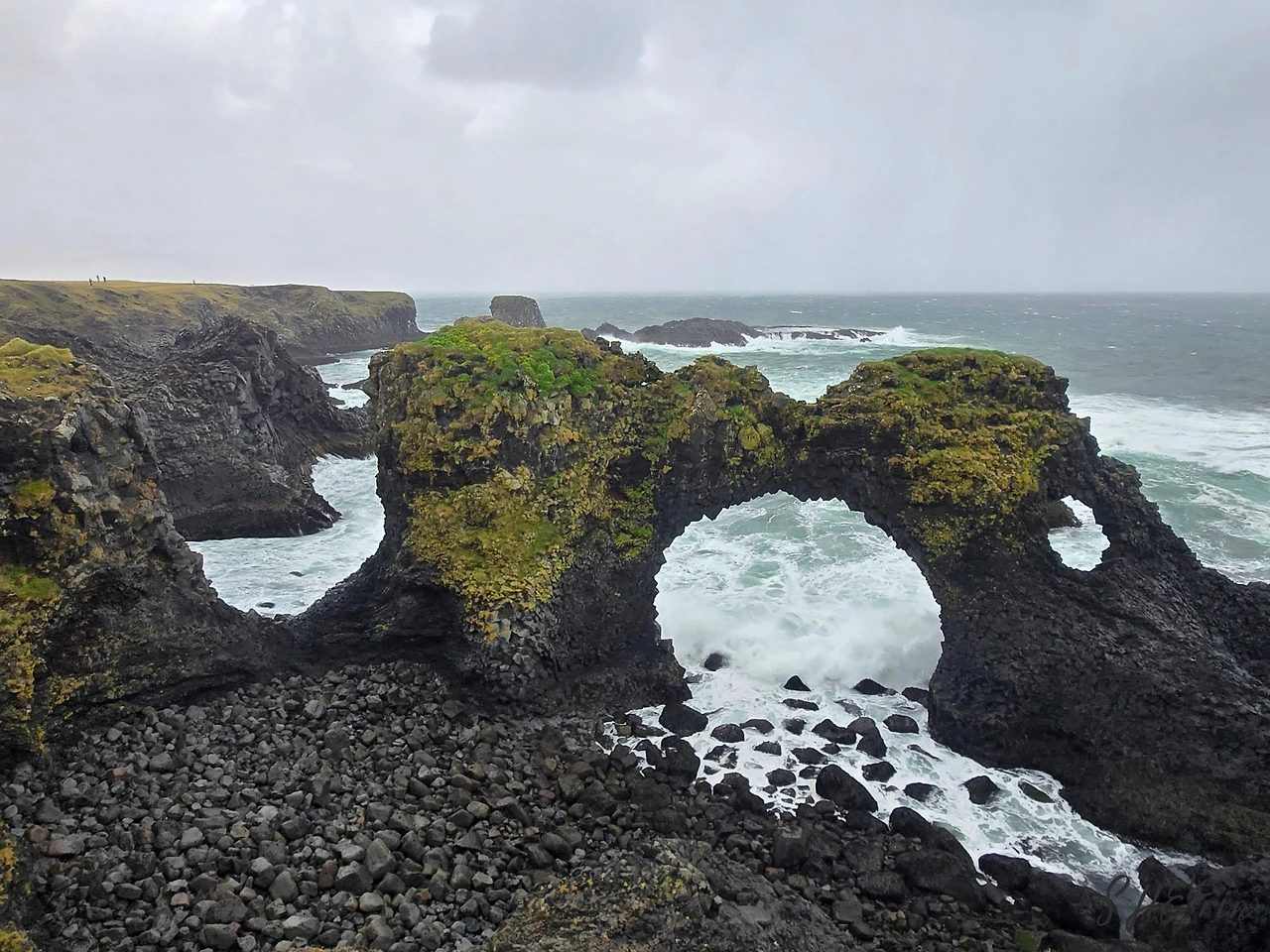 그러나 여행은 이제 시작일 뿐이고, 스나이펠스네스는 바다로 둘러싸인 반도이기에, 앞으로 가야 할 곳들도 모두 해안가였다. 곧이어 들른 곳은 근사한 기암괴석들을 볼 수 있는 론드란가르 (Lóndrangar) 절벽, 그리고 그다음에 들른 곳은 해안 산책로로 유명한 아르나르스타피 (Arnarstapi)라는 어촌 마을이었다. 된통 당하고 났으니 좀 더 비장한 마음을 다잡았지만, 바람은 매번 우리의 예상을 뛰어넘었다.