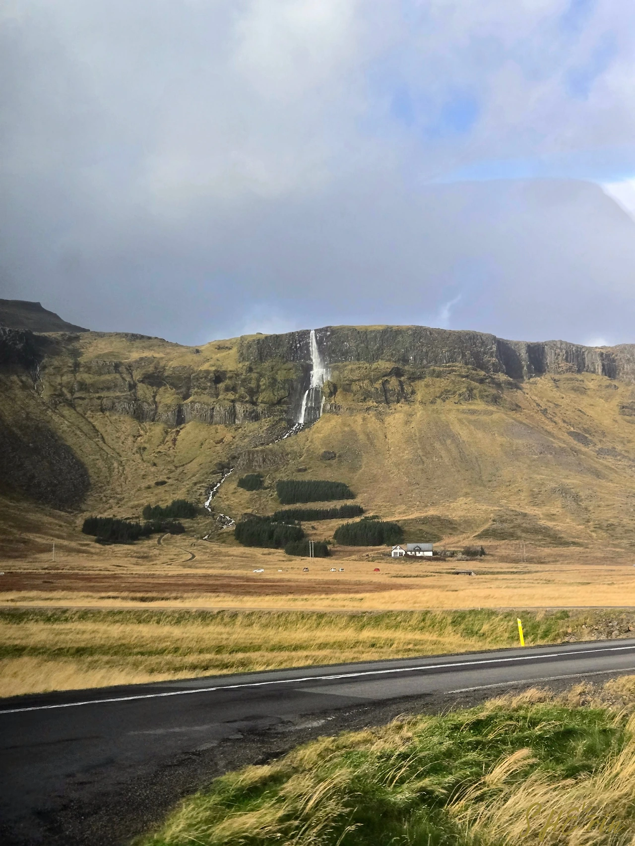 그래도 이제 투어는 막바지로 향하고 있었다. 마지막 목적지는 물개 구경이었다. 가는 길에는 검은색 교회 부다키르캬 (Búðakirkja)를 잠시 구경하고, 이곳에서 보이는 폭포를 반갑게 맞았다. 10년 전에도 보자마자 사진 속에 남겼던 폭포인데, 살짝 비뚤어지게 꺾인 모습이 인상적이었던 곳이다. 여전히 같은 모습으로 서 있었다. 10년이 지나도 변하지 않는 강산이 있나 보다.