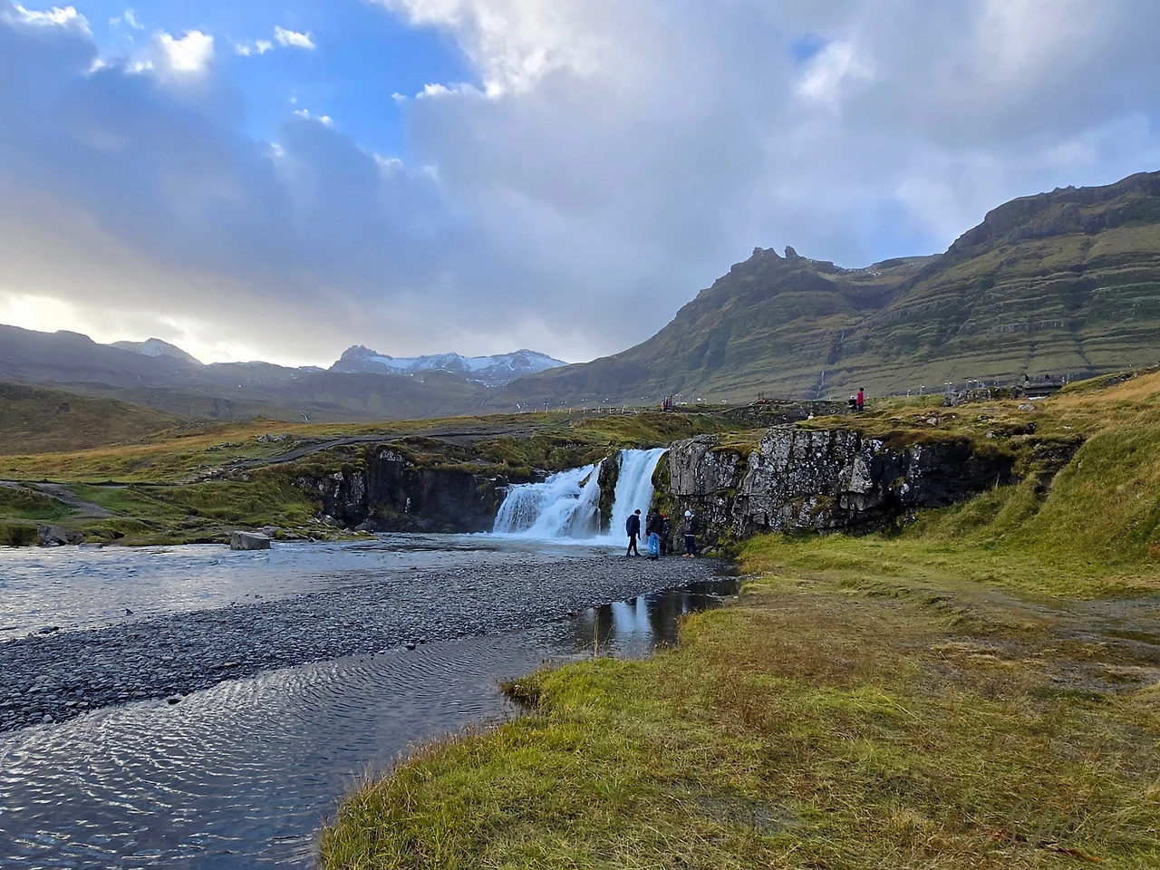 '작은 아이슬란드'라 불리는 스나이펠스네스 반도는 평화로운 자연 풍경으로 가득했다. 드문드문 작은 마을들을 지나고, 군데군데 폭포들을 지나, 여러 모양의 산들도 지났다. 이틀 전에 내린 눈의 흔적인지, 아니면 'snowy'라는 이곳의 이름 덕분인지는 몰라도 산들 위에는 하얀 빛깔이 엷게 퍼져있었다.