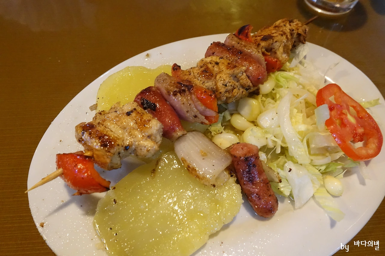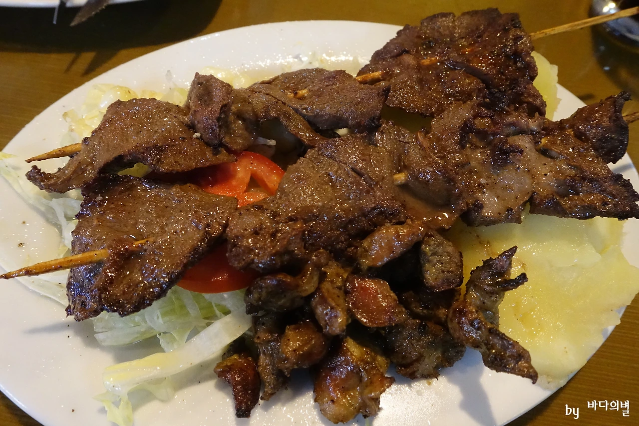 저녁은 페루의 음식 안티꾸쵸(Anticucho)를 먹으러 갔다. 안티꾸쵸는 소의 심장 꼬치구이이다. 다소 잔인하게 느껴지는 재료 이름과는 달리 식감도 향도 거부감이 없었고 맛있었다. 이쯤에서 밝히자면 나는 온갖 음식을 다 잘 먹는 편이다. 지금까지 먹어본 가장 특이한 음식은 아이슬란드에서 먹었던 양머리 고기인데, 그것도 상당히 많은 양을 잘 먹었다. 그러니 당연히 안티꾸쵸도 맛있게 먹으리라 생각하고 망설임 없이 주문했다. 엄마는 어떨지 몰라서 닭고기 꼬치도 함께 주문했는데 다행히 둘 다 맛있었고 엄마도 안티꾸쵸를 잘 드셨다. 특히 두 요리 모두 꼬치 아래에 깔린 감자가 정말 맛있었다. 감자의 원산지답다.