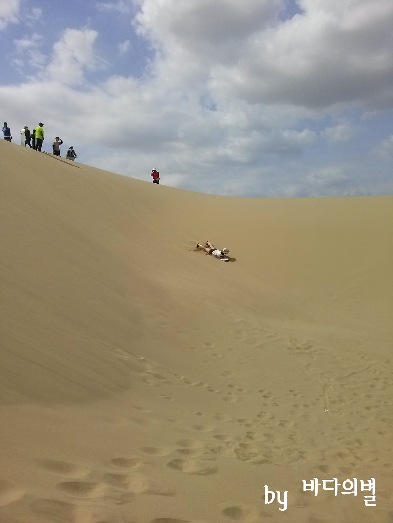그렇게 정신없는 라이드가 끝나고, 사진을 찍으라고 내려주었다. 드디어 살았다고 생각하고 좋아했더니, 샌드 보딩이라는 또 다른 고비가 시작되었다. 보편적인 후기들을 토대로 당연히 재미있을 줄 알았는데, 생각보다 높고 경사가 많이 진 곳에서 했다. 게다가 배를 판에 대고 엎드려서 타다 보니 더 무서웠고 심장도 기분 나쁘게 철렁 내려앉았다. 하고 싶지 않았지만, 하지 않을 경우 저놈의 버기카를 다시 타고 내려가야 한다는 생각에 억지로 했다. 3번의 코스가 있었는데 2번까지만 했다. 심지어 두 번째 할 때에는 보드에 손바닥도 긁혀서 상처가 났다. 평소 그토록 싫어하는 일을 두 번이나 했으니 이만하면 되었다는 생각이 들어 그만두었다.